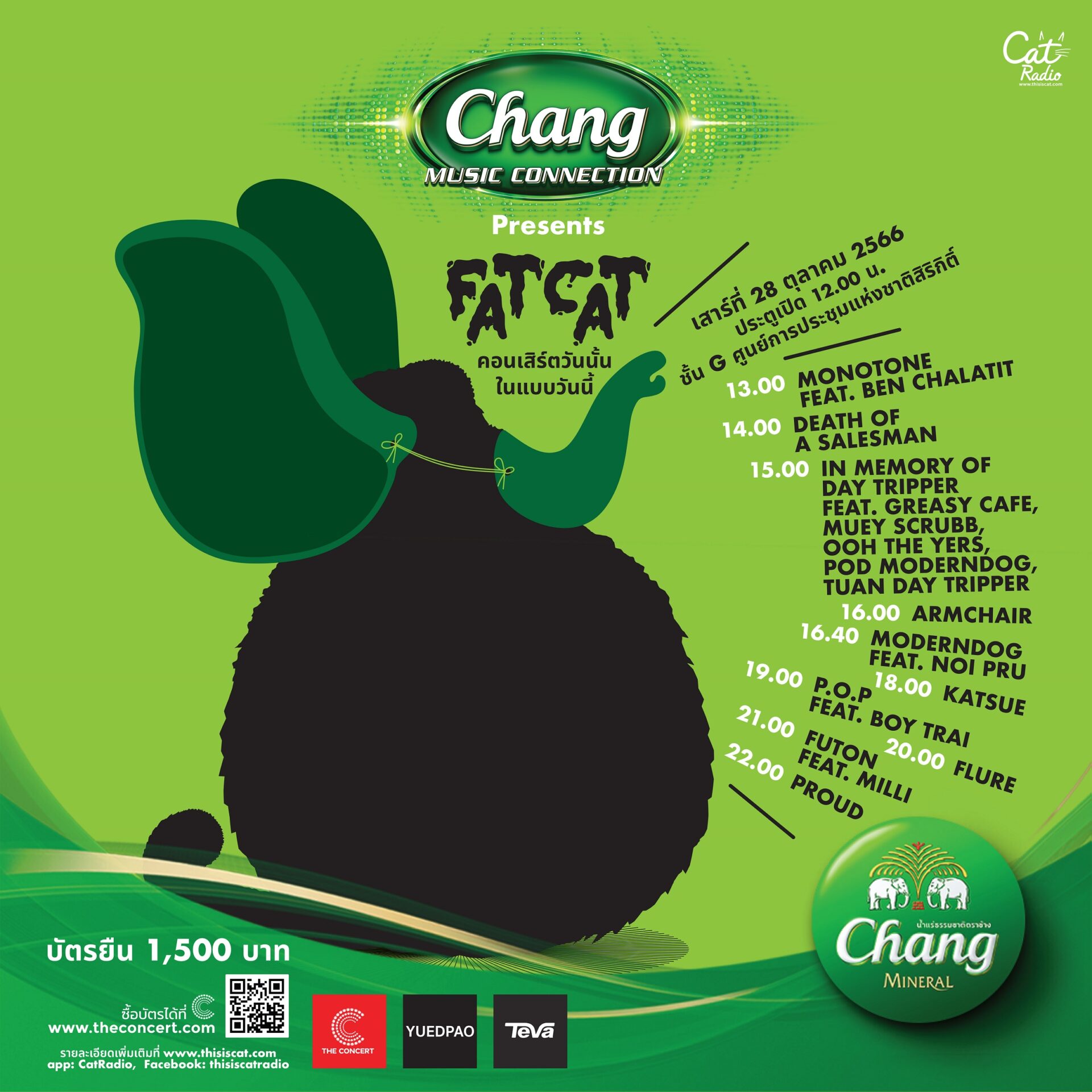 • CHANG MUSIC CONNECTION Presents FATCAT คอนเสิร์ตวันนั้นในแบบวันนี้ จัดขึ้นวันที่ 28 ตุลาคม 2566 รวมพลศิลปินยุค 1990-2000 ที่อยู่ในความทรงจำ พร้อมการจัดแสดงของเล่นที่คุณคิดถึง