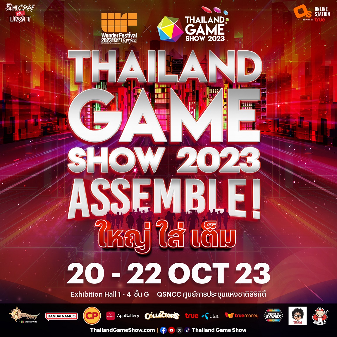 • Thailand Game Show x Wonder Festival Bangkok 2023 จัดขึ้นวันที่ 20 – 22 ตุลาคม 2566 มหกรรมงานเกมยิ่งใหญ่ที่สุดแห่งเอเชียตะวันออกเฉียงใต้ และครั้งแรก กับการผนึกกำลังงานระดับตำนานอย่าง Wonder Festival มหกรรมการแสดงของเล่น และป๊อปคัลเจอร์ที่ใหญ่ที่สุดในโลกจากญี่ปุ่น ในคอนเซ็ปต์ “Assemble”