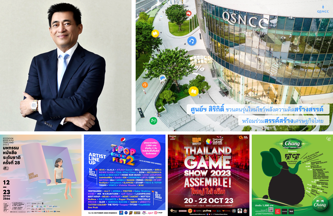 ศูนย์การประชุมแห่งชาติสิริกิติ์ เปิดพื้นที่แห่งแรงบันดาลใจ เอาใจคนรุ่นใหม่โชว์พลังแห่งความคิดสร้างสรรค์ ผ่าน 4 อิเวนต์ ในเดือนตุลาคม “Book Expo Thailand 2023” หรือ “มหกรรมหนังสือระดับชาติ ครั้งที่ 28” “PEPSI Presents T-POP Concert Fest 2” เทศกาลดนตรี ที่ Pop ที่สุด “Thailand Game Show x Wonder Festival Bangkok 2023” มหกรรมงานเกมยิ่งใหญ่ที่สุดแห่งเอเชียตะวันออกเฉียงใต้ และครั้งแรก กับการผนึกกำลังงานระดับตำนานอย่าง Wonder Festival จากประเทศญี่ปุ่น และ “CHANG MUSIC CONNECTION Presents FATCAT คอนเสิร์ตวันนั้นในแบบวันนี้” พร้อมร่วมสนับสนุนอุตสาหกรรมสร้างสรรค์ สรรค์สร้างเศรษฐกิจไทย