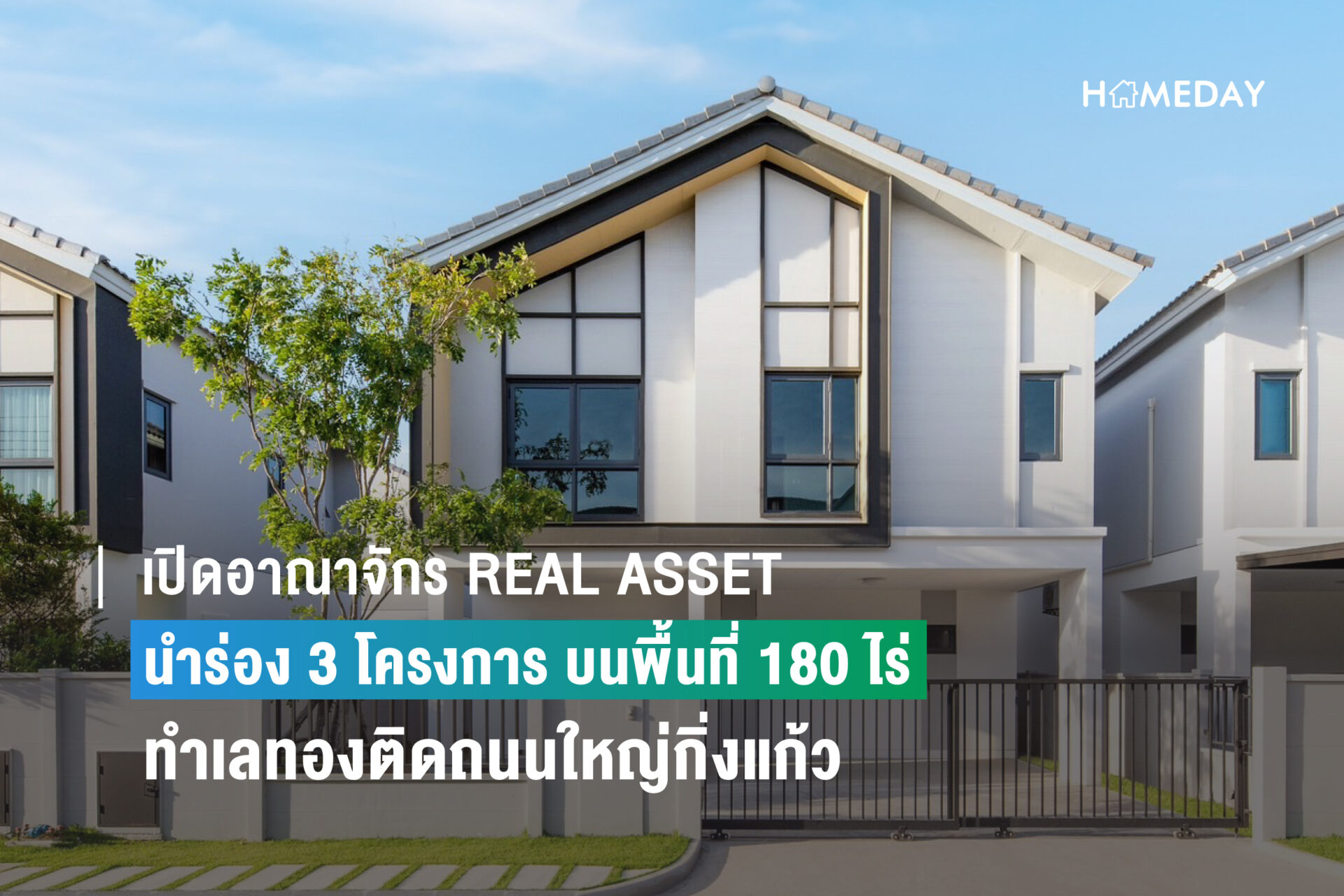 เปิดอาณาจักรเนื้อที่ 180 ไร่ ริมถนนใหญ่กิ่งแก้ว REAL ASSET ลุยที่อยู่อาศัยแนวราบทำเลศักยภาพบางนา-ตราดนำร่อง 3 โครงการ มูลค่ารวมทั้งสิ้นกว่า 2,900 ล้านบาท เจาะกลุ่มลูกค้าระดับกลางถึงกลางบน ราคาขายเริ่ม 2-8 ล้านบาท ตอบโจทย์การอยู่อาศัย ใส่ใจรายละเอียด