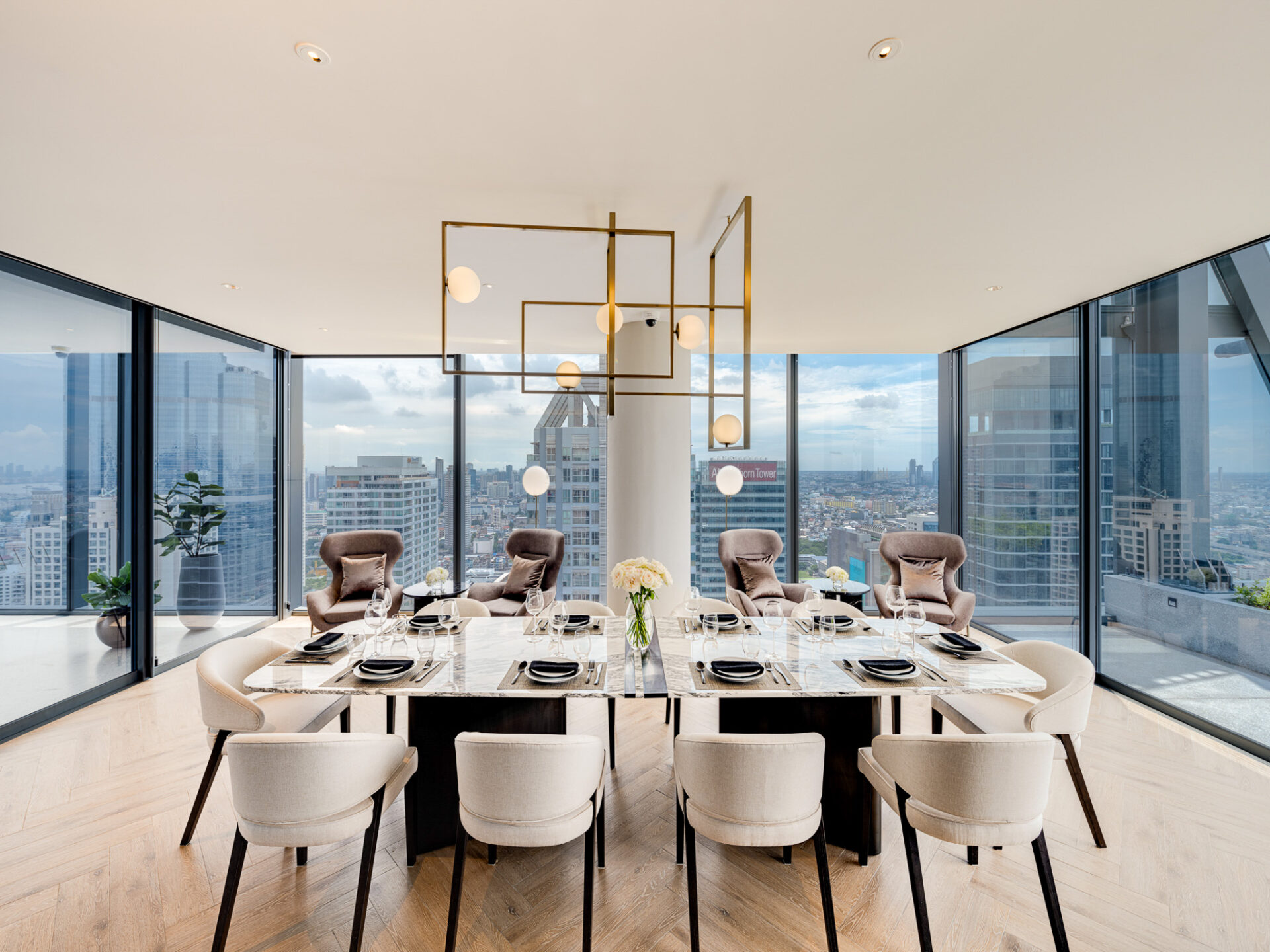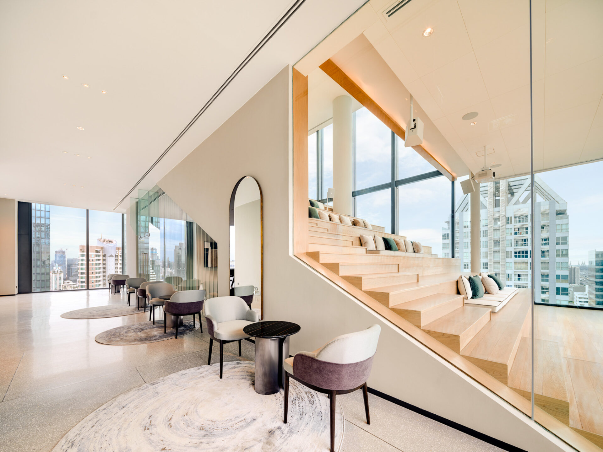 เลาจน์สำหรับนั่งพักผ่อน และชมวิวเมือง ที่เปิดรับทิวทัศน์ของกรุงเทพฯ ได้อย่างตระการตา