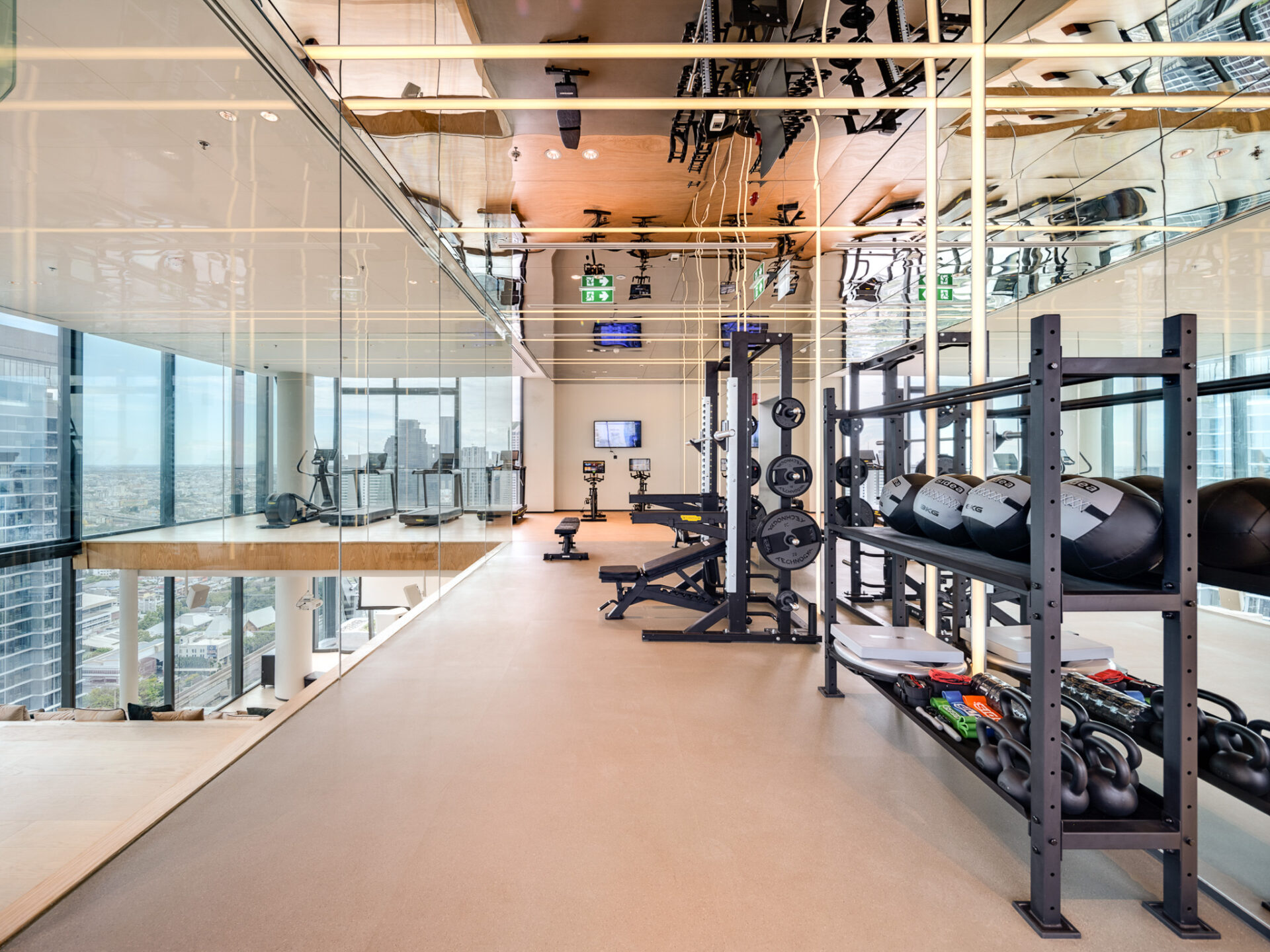 • ชั้น 38: ห้องออกกำลังกายอเนกประสงค์พร้อมห้องยิมสตูดิโอ ที่มีจุดเด่น คือ ออกแบบให้เป็นห้องกระจกเต็มบาน รับวิวเมืองได้เต็มสายตา สามารถออกกำลังกายไปด้วยและชมวิวเมืองได้แบบพาโนรามา โดยห้องออกกำลังกาย แบ่งเป็น 2 โซน ช่วยลดความหนาแน่น และมีอุปกรณ์ออกกำลังกายจากแบรนด์อันดับ 1 ของโลกจากอิตาลีอย่าง Technogym ให้เล่นมากกว่า 20 ฟังก์ชั่น นอกจากนี้ ยังมีห้องสตูดิโอ สำหรับให้ครูมาสอนโยคะ ซ้อมเต้น หรือกิจกรรมอื่นๆ ได้