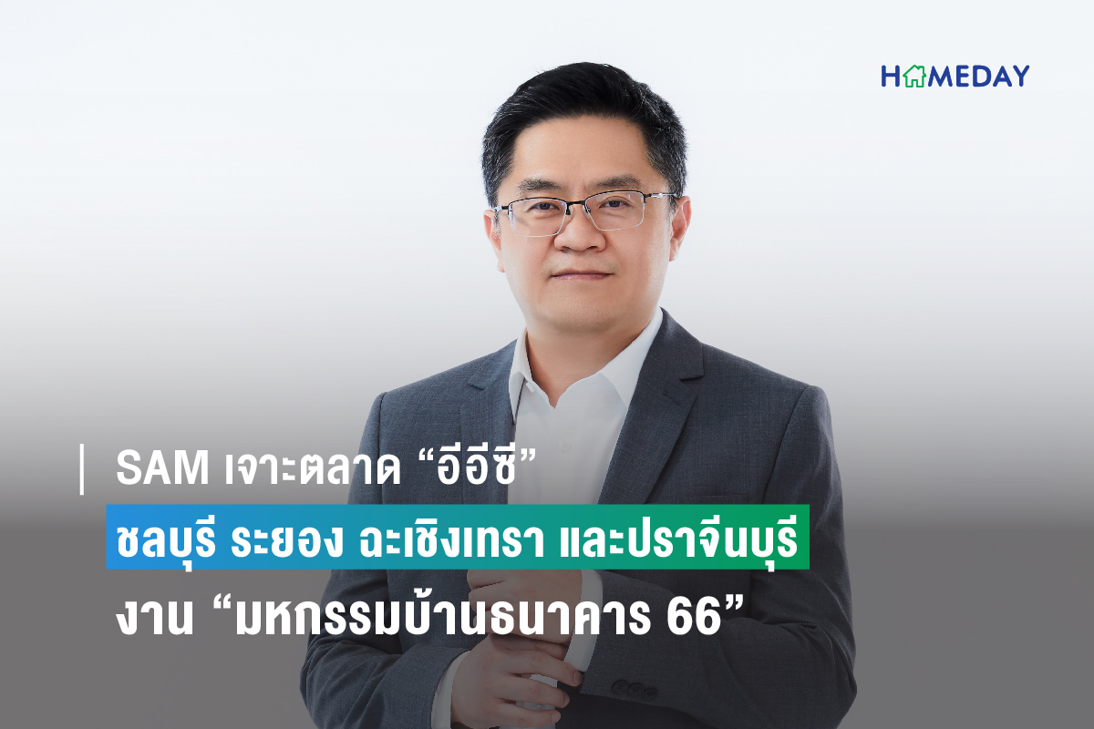 SAM บริษัทบริหารสินทรัพย์ของคนไทย เจาะตลาด “อีอีซี” นำทรัพย์มือสองกว่า 100 รายการ ในพื้นที่ ชลบุรี ระยอง ฉะเชิงเทรา และปราจีนบุรี ร่วมงาน “มหกรรมบ้านธนาคาร 66” ที่เซ็นทรัล พัทยา พร้อมโปรโมชันสุดคุ้ม อาทิ SAM Surprise Sale ลดสูงสุด 20% ฟรี! โอนไม่อั้น และฟรี! โอนคนละครึ่ง เริ่ม 21-23 ก.ค.นี้