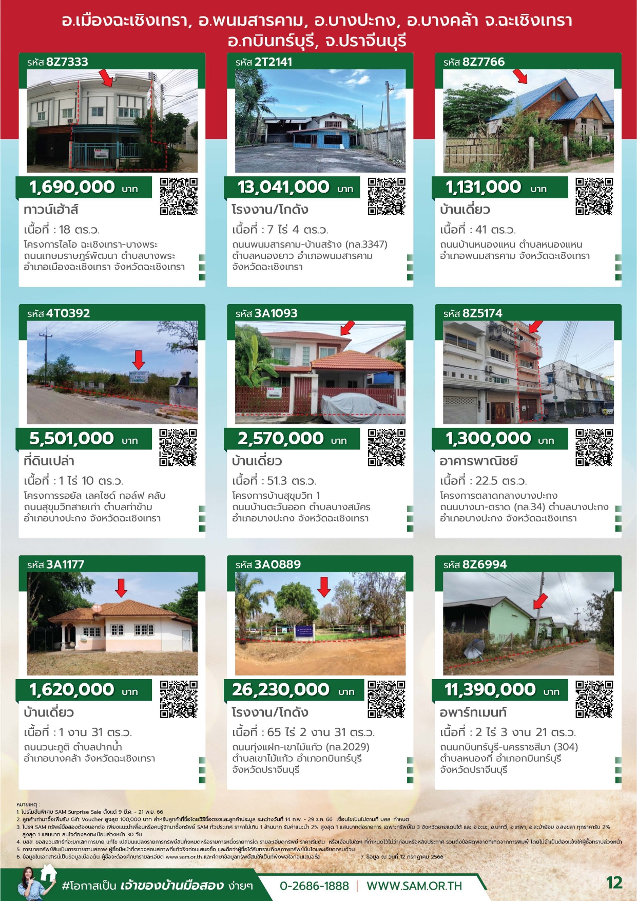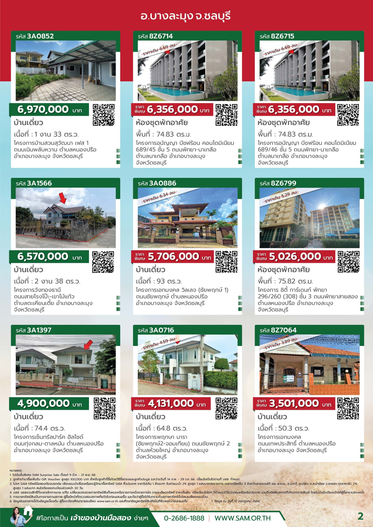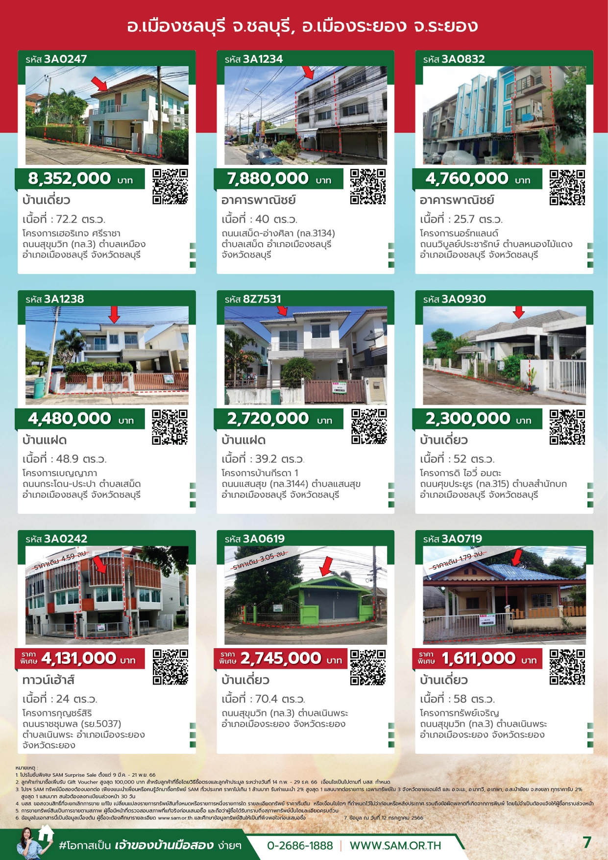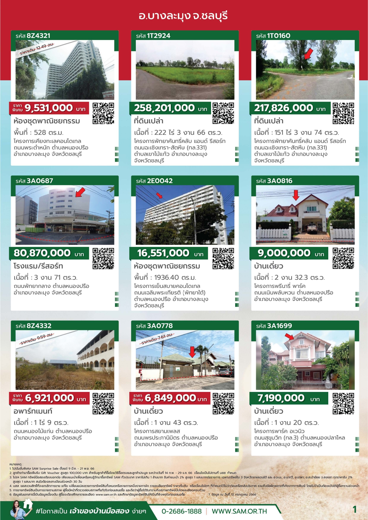 ผู้สนใจสามารถชมรายการทรัพย์ลดราคาพิเศษจังหวัดชลบุรีได้ที่ https://bit.ly/3OfnLUj และ E-Brochure ที่ https://bit.ly/3PP833n สอบถามข้อมูลหรือรายละเอียดเพิ่มเติมได้ที่ Facebook หรือ Line@ : http://bit.ly/3ZuUUOV หรือสามารถสอบถามรายละเอียดเพิ่มเติมได้ที่ Call Center 02-686-1888 และดูรายละเอียดทรัพย์สินอื่นๆ ได้ทางเว็บไซต์ www.sam.or.th รวมทั้งช่องทางออนไลน์ที่หลากหลายและสะดวกรวดเร็ว