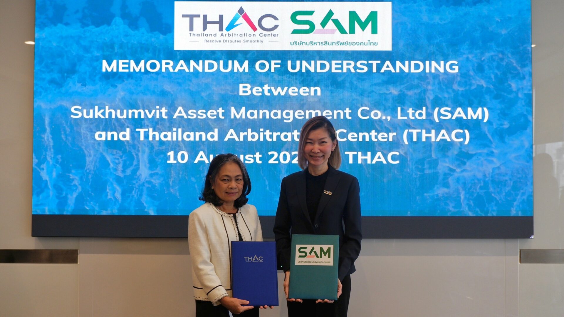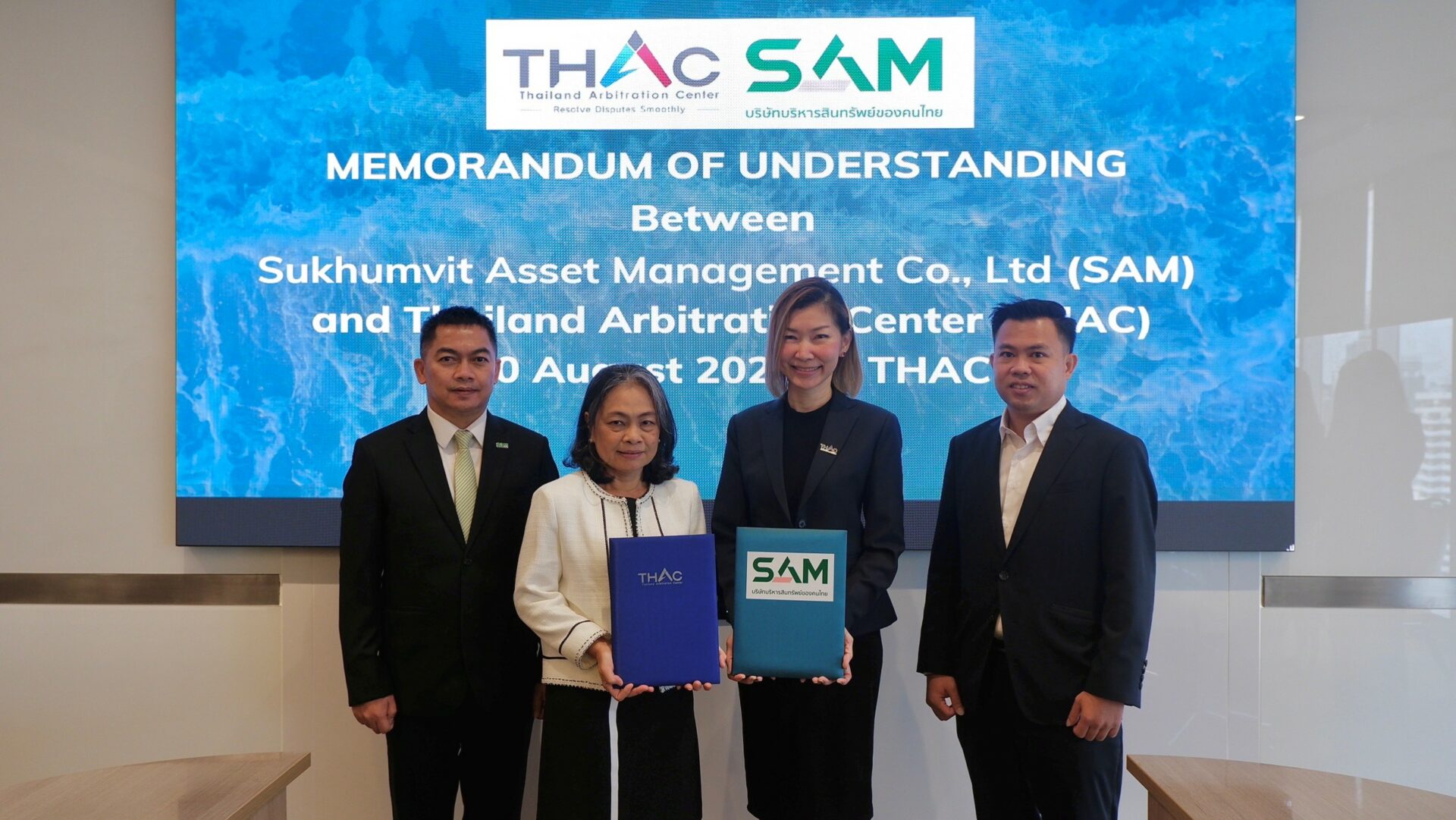 นายประพนธ์ เพิ่มพิทักษ์ ผู้บริหารฝ่ายบริหารการจำหน่ายทรัพย์ NPA1 (ซ้ายสุด) และนางสาว ทิพย์ประภา บูรณ์โภคา ผู้บริหารฝ่ายบริหารการจำหน่ายทรัพย์ NPA 3 (ที่ 4 จากซ้าย) บริษัท บริหารสินทรัพย์สุขุมวิท จำกัด (บสส.) หรือ SAM เข้าพบและร่วมหารือกับนายชาญวิทย์ รุ่งเรืองผล นายกสมาคมชุมนุมอสังหาริมทรัพย์ไทยหรือ TRECA เพื่อชี้แจงถึงรายละเอียดของโครงการ “SAM ทรัพย์มือสองต้องบอกต่อ” เพื่อให้สมาชิกสมาคม TRECA นำทรัพย์สินรอการขาย (NPA)ที่มีความหลากหลายของ SAM ไปทำการตลาดและจำหน่ายได้ตรงกับกลุ่มลูกค้าเป้าหมาย โดยผู้แนะนำจะได้รับค่าแนะนำสูงสุดถึง 3 ล้านบาท