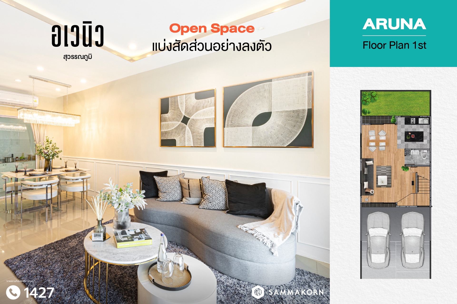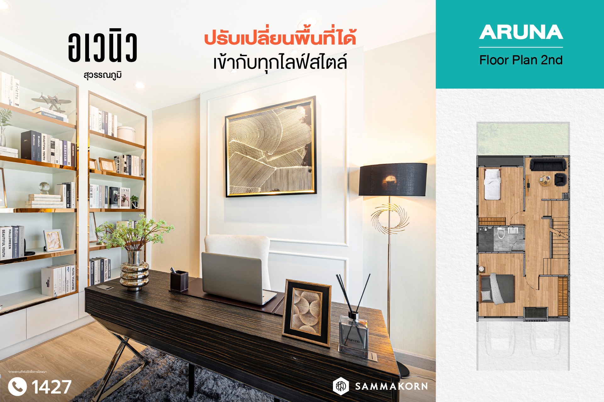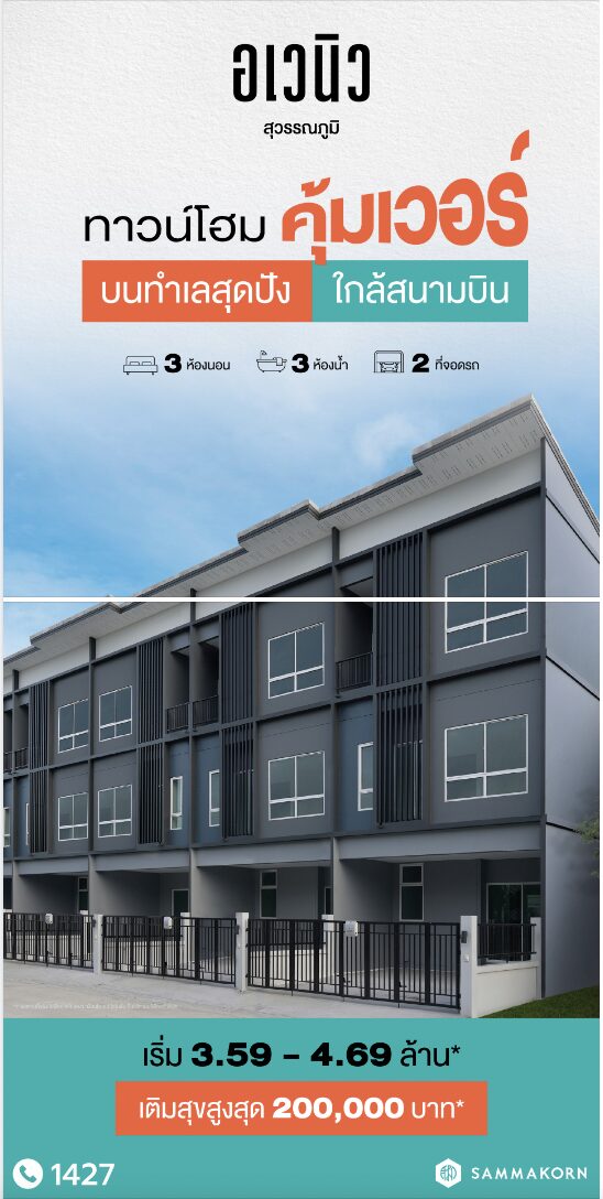 สัมมากร อเวนิว สุวรรณภูมิ ทาวน์โฮมพรีเมียม Modern Minimal พื้นที่กว้างจัดสรรชีวิตให้ง่ายยิ่งขึ้นไม่มีสะดุด ด้วยพื้นที่ใช้สอยมาจัดเต็ม เดินทางสะดวก ใกล้กรุงเทพกรีฑา สนามบินสุวรรณภูมิ และ Airport Link ลาดกระบัง