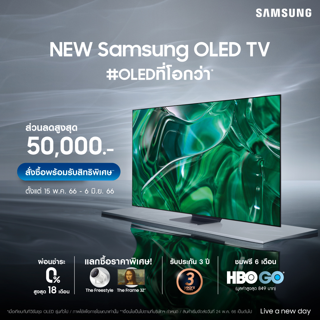 ซัมซุงมอบทางเลือกให้ผู้บริโภคตลาดทีวีพรีเมียมมากขึ้นด้วยการสัมผัสประสบการณ์การรับชมแบบ #OLEDที่โอกว่ากับ New Samsung OLED TV พบโปรโมชั่นพิเศษ Early Order ตั้งแต่วันที่ 15 พฤษภาคม – 6 มิถุนายน 2566 เท่านั้น ทาง www.samsung.com/th และร้านค้าชั้นนำทั่วประเทศ