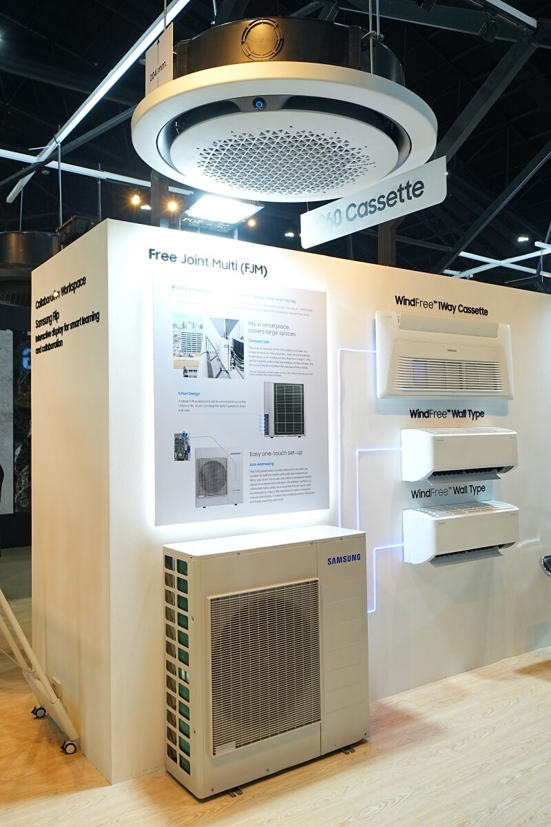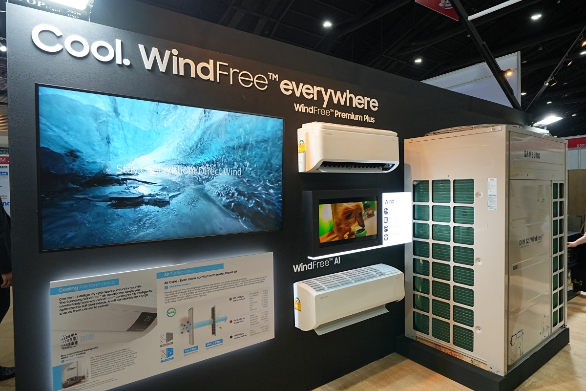 เครื่องปรับอากาศกลุ่ม WindFree™ และเครื่องปรับอากาศเชิงพาณิชย์ พร้อมฟีเจอร์ล้ำสมัยและการทำงานด้วย AI Energy Mode ที่จัดการเรื่องความเย็นในบ้านให้อย่างมีประสิทธิภาพ ช่วยประหยัดไฟ ตอกย้ำความเป็นผู้นำนวัตกรรมเครื่องปรับอากาศ WindFree™ แบรนด์แรกของโลกที่สามารถกระจายลมเย็นแบบไม่ปะทะตัวได้ เพิ่มเติมจากการปล่อยลมเย็นแบบเดิม อีกทั้งยังเพิ่มความคุ้มค่าและประสบการณ์อัจฉริยะด้วยเทคโนโลยีที่ช่วยเชื่อมต่อได้อย่างไร้ขีดจำกัดอย่าง SmartThings จากความเข้าใจในความต้องการของผู้บริโภคอย่างลึกซึ้ง ซัมซุงจึงมอบความหลากหลายของสินค้าเพื่อตอบสนองทุกความต้องการ ทั้ง WindFree™ Premium Plus, WindFree™AI, 360 Cassette, WindFree™ 1Way Cassette, WindFree™ 4Way Cassette, Free Joint Multi (FJM) และ DVM S2 ที่ให้ความเย็นสบายลมไร้ลมหนาว และส่งลมได้ไกล อากาศเย็นจะกระจายไปทั่วห้องอย่างนุ่มนวล มี PM 1.0 Filter System ที่ช่วยดูแลอากาศให้สะอาดทั่วทั้งบริเวณ ป้องกันลมหายใจจากอนุภาค PM1.0 และ Smart Building Solution ที่ช่วยจัดการอุปกรณ์บนอาคารทั้งหมด ใช้งานง่าย สะดวกสบายและรวดเร็ว ช่วยประหยัดทั้งพลังงานและต้นทุน ผู้บริโภคสามารถตรวจดูการใช้พลังงาน พร้อมสั่งการเครื่องใช้ไฟฟ้าภายในอาคารให้ใช้พลังงานสะสมจากโซลาร์เซลล์ได้ รวมถึงติดตามการใช้ไฟฟ้าและค่าใช้จ่ายโดยประมาณและยังช่วยสามารถประหยัดค่าไฟได้ จากการวิเคราะห์สถานภาพของอุปกรณ์แต่ละเครื่อง ไปจนถึงการใช้งาน เพื่อการวางแผนการใช้งานอย่างเกิดประโยชน์สูงสุด และยังช่วยลดต้นทุนอีกด้วย