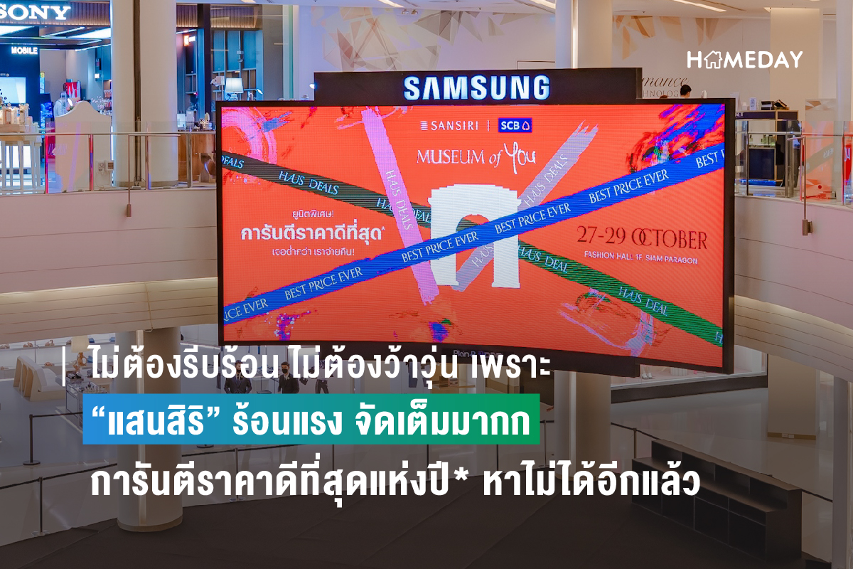 กระหึ่มเมือง! แสนสิริ ย้ำเบอร์หนึ่งแบรนด์อสังหาฯ ประกาศจัดงานใหญ่แห่งปี รวบรวมไฮไลท์ 6 แบรนด์ระดับมาสเตอร์พีซ “VIA – SHUSH – BUGAAN –NARASIRI – SETTHASIRI – BURASIRI” ถ่ายทอดแนวคิดผ่านงานอาร์ต ‘Museum of YOU’ ใจกลางสยามพารากอน 27-29 ต.ค. นี้ที่สุดแห่งปี! กับ BEST PRICE EVER คัดยูนิตพิเศษจาก 34 โครงก