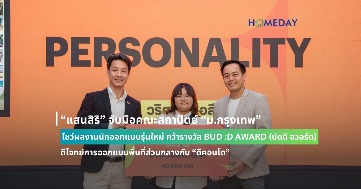 • จับมือคณะสถาปัตย์ “ม.กรุงเทพ” โชว์ผลงานกลุ่มนักออกแบบรุ่นใหม่ คว้ารางวัล BUD 😀 AWARD (บัดดี อวอร์ด) มุ่งสร้างสรรค์ผลงานการออกแบบ ที่ตอบโจทย์กลุ่มเป้าหมาย แคมปัสคอนโดอย่างแท้จริง