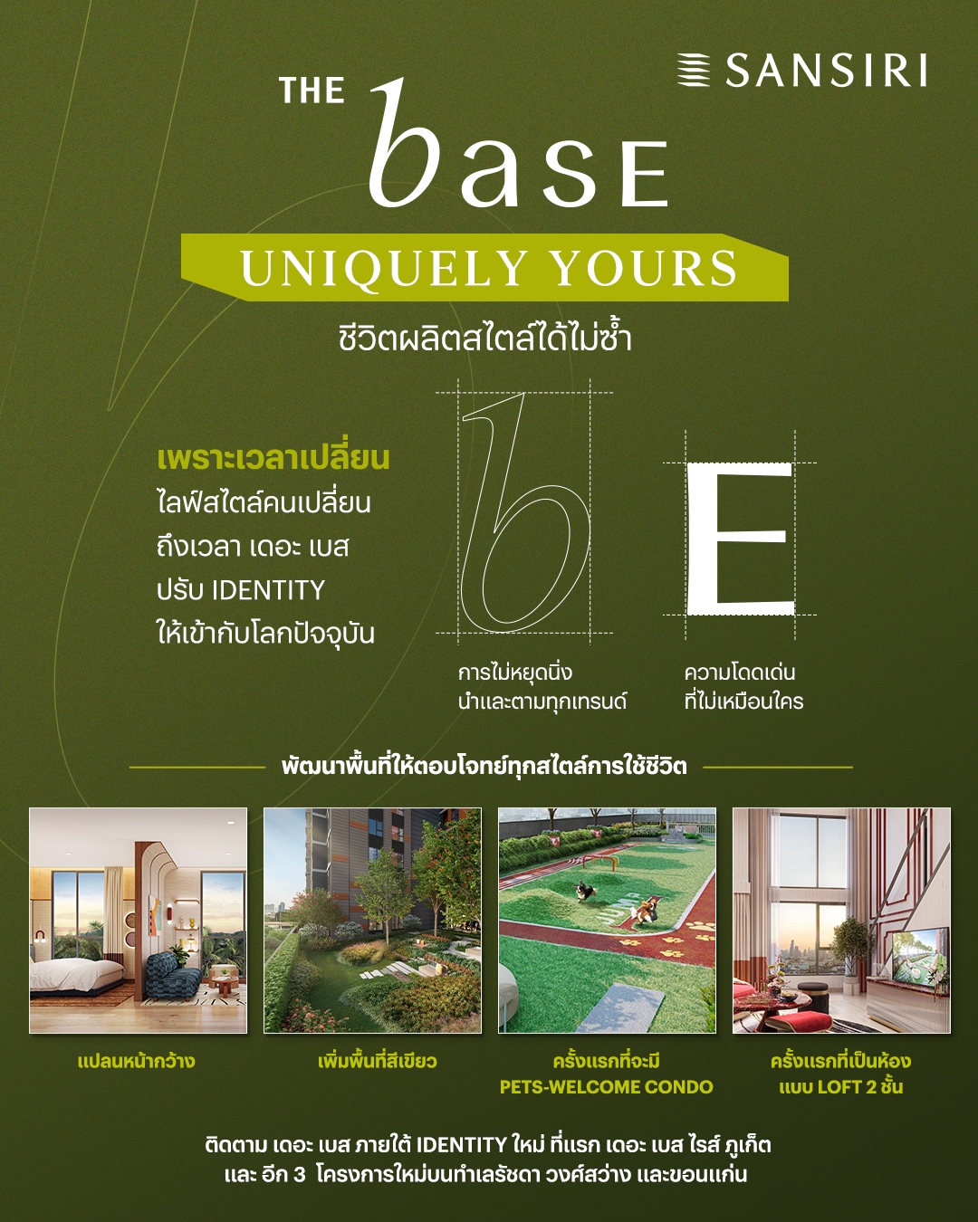 นายองอาจ สุวรรณกุล ผู้ช่วยกรรมการผู้จัดการอาวุโสสายงานพัฒนาโครงการคอนโดมิเนียม บริษัท แสนสิริ จำกัด (มหาชน) เปิดเผยว่า เพื่อเป็นการตอกย้ำผู้นำแบรนด์อสังหาอันดับหนึ่ง และผู้นำด้านดีไซน์ แสนสิริได้ปรับโฉมแบรนด์ THE BASE ครั้งใหญ่ หลังจากประสบความสำเร็จมาแล้วถึง 20 โครงการ รวมกว่า 13,500 ยูนิต ทั้งในกรุงเทพฯ และหัวเมืองใหญ่ทั่วประเทศ มูลค่ารวมกันกว่า 36,000 ล้านบาท โดยกลยุทธ์ Brand Refresh ครั้งนี้ แสนสิริได้ปรับเปลี่ยนทั้ง Identity ของแบรนด์ และโปรดักส์ เพื่อสร้างการจดจำ และตรงใจกลุ่มเป้าหมายมากขึ้น ด้วยคอนเซปใหม่ “Uniquely Yours ชีวิตผลิตสไตล์ได้ไม่ซ้ำ” มาจากแนวคิดไลฟ์สไตล์การใช้ชีวิตของกลุ่มเป้าหมายเดอะ เบส ที่ต้องไม่พลาดทุกกระแส จากการเป็นนักพัฒนาตัวยง ที่พร้อมจะปรับทุกเทรนด์ให้เป็นสไตล์ในแบบของตัวเอง โดยไม่ว่าไลฟ์สไตล์การใช้ชีวิตจะเปลี่ยนไปเร็วแค่ไหน เดอะ เบส ก็พร้อมออกแบบทุกพื้นที่ให้เป็นเหมือนผืนผ้าใบ ให้กลุ่มลูกค้าได้ทดลองค้นหาสไตล์ที่เป็นอัตลักษณ์ของตัวเอง รวมถึงได้พักผ่อนในพื้นที่ส่วนกลางที่พร้อมรองรับทุกความชอบ ทุกกิจกรรม บนทำเลที่ใช้ชีวิตได้ตามสไตล์ในแบบที่ต้องการ