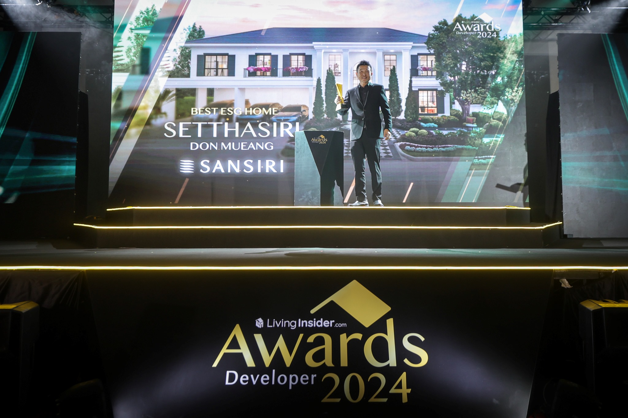ถัดมา เป็นรางวัลสำหรับโครงการอสังหาริมทรัพย์ที่มีผลงานยอดเยี่ยม โดยมีโครงการแสนสิริ ดังนี้ เศรษฐสิริ ดอนเมือง บ้านเดี่ยวระดับลักซ์ชัวรี่ สไตล์จอร์เจียน คว้ารางวัล Best ESG Award ประเภทบ้าน โดยโครงการมีจุดเด่นเรื่องของแนวคิด Green Living Designed Home บ้านที่ถูกสร้างด้วยแนวคิดด้านความยั่งยืน ดีต่อสิ่งแวดล้อมและผู้อยู่อาศัย รวมถึงให้ความสำคัญกับ Green Public Space ที่มีสวนส่วนกลาง ขนาดใหญ่กว่า 4 ไร่ พร้อมทั้ง Lake และ Sansiri Backyard สวนผักสีเขียวและสวนส่วนกลาง เพื่อเพิ่มอากาศบริสุทธิ์ สุขภาพที่ดีและยั่งยืนในระยะยาวแก่ลูกบ้านทุกคน