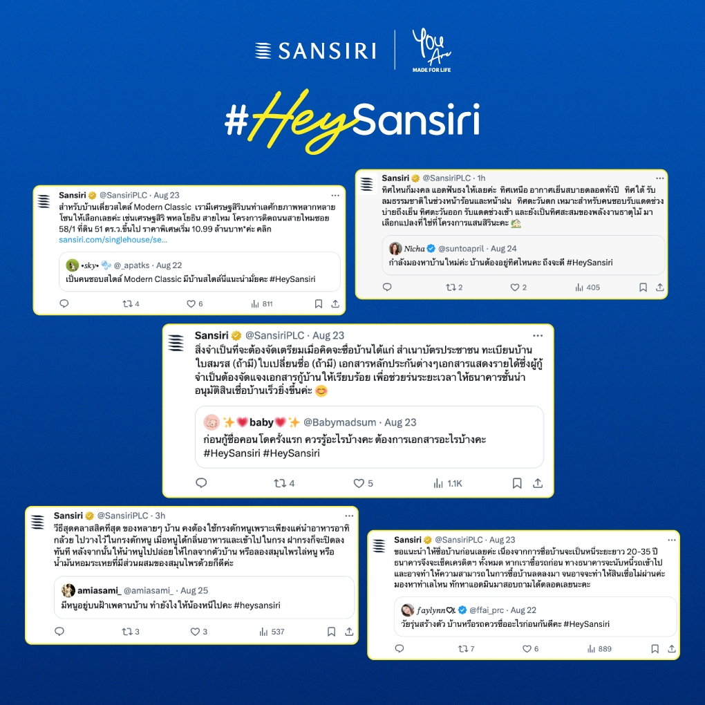 แคมเปญ #HeySansiri อยากรู้เรื่องบ้านและคอนโด ถามมาเลย! สอดคล้องกับแนวคิด “YOU Are Made for Life” ของแสนสิริ ซึ่งมุ่งเน้นการเป็นแบรนด์ที่อยู่เคียงข้างลูกค้าและตอบสนองทุกความต้องการเรื่องที่อยู่อาศัย นับเป็นก้าวสำคัญในการสร้างความสัมพันธ์กับลูกค้าและการยกระดับบริการให้ตรงกับความต้องการของผู้บริโภคในยุคดิจิทัล