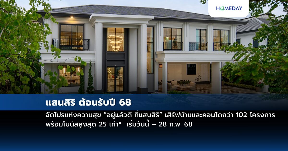 • แสนสิริ ต้อนรับปี 68 ส่งโปรโมชั่น “อยู่แล้วดี ที่แสนสิริ” ให้ทุกคนมีบ้านในฝันในแบบที่ต้องการในเทศกาลแห่งความสุข