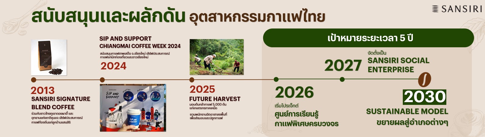 “ต่อมาแสนสิริได้มีโอกาสปรึกษากับตลาดหลักทรัพย์แห่งประเทศไทย และได้รับคำแนะนำถึงแนวทางการส่งเสริมให้บริษัทจดทะเบียนต่อยอดการสร้าง Social Enterprise เพื่อสร้างผลลัพธ์ทางสังคมได้อย่างเป็นรูปธรรม อาทิ จัดตั้งหน่วยงาน “วิสาหกิจเพื่อสังคมแบบไม่แสวงหากำไร” ทำหน้าที่ขับเคลื่อนกิจกรรมหรือโปรเจกต์เพื่อสังคมให้มีความต่อเนื่อง สร้างรายได้ด้วยตนเองจากการดำเนินธุรกิจเพื่อไม่ให้ต้องพึ่งพาเงินบริจาคแต่เพียงอย่างเดียว และนำกำไรที่ได้จะกลับคืนสู่ชุมชนทั้งหมด จึงเป็นที่มาของการจัดตั้ง “ศูนย์การเรียนรู้กาแฟพิเศษครบวงจร” เป็นแนวทางที่เราจะใช้พืชเศรษฐกิจอย่างกาแฟมาเป็นตัวเชื่อมโยงให้เกษตรกร และทุกภาคส่วนที่อยู่ในอุตสาหกรรมนี้หันมายกระดับเศรษฐกิจฐานรากร่วมกัน โดยหวังว่าจะเป็นอีกตัวอย่างการสร้างกลไกเพื่อช่วยสร้าง