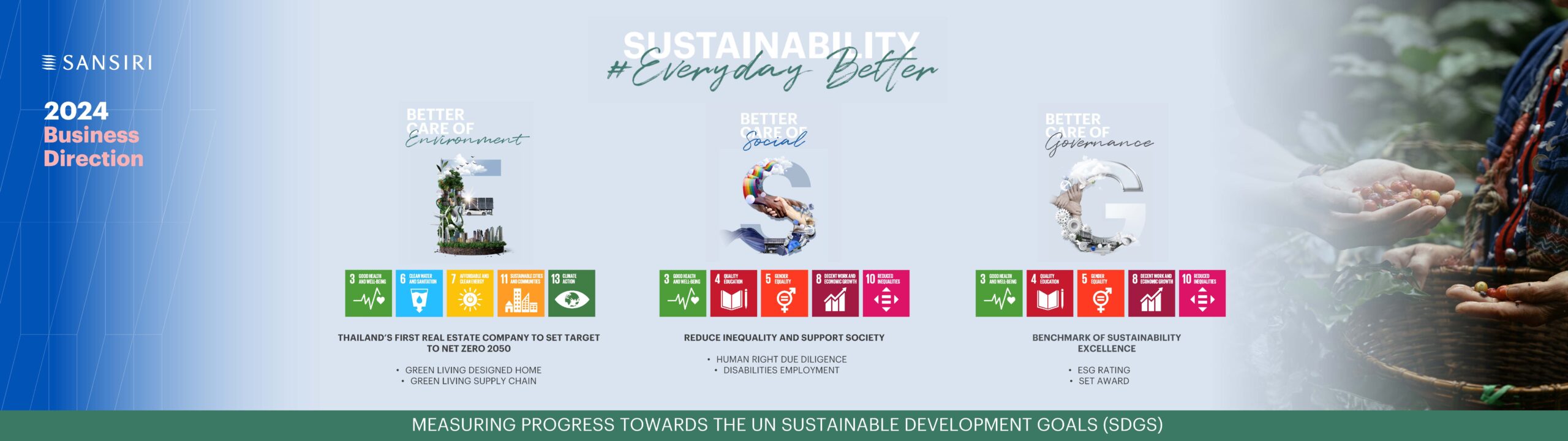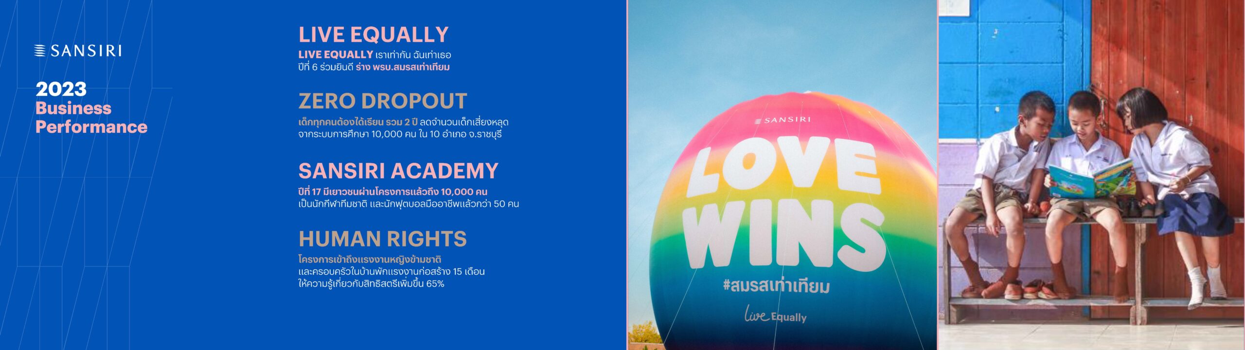 ท่ามกลางสถานการณ์ที่ท้าทาย เราได้มุ่งมั่นพัฒนาธุรกิจและเดินหน้าเติบโตต่อไปอย่างแข็งแกร่ง ควบคู่ไปกับการให้ความสำคัญกับสังคมและการดูแลรักษาสิ่งแวดล้อมอย่างต่อเนื่อง ซึ่งแสนสิริเชื่อว่าเป็นส่วนสำคัญในการสร้างความยั่งยืนในอนาคต