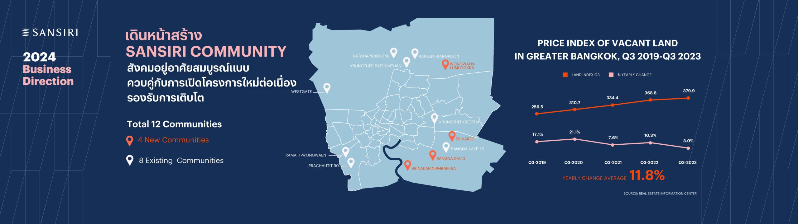 • สานต่อโมเดล “Sansiri Community” ในแต่ละทำเลที่แสนสิริเข้าไปพัฒนาโครงการ และยกระดับให้เป็นสังคมอยู่อาศัยสมบูรณ์แบบ