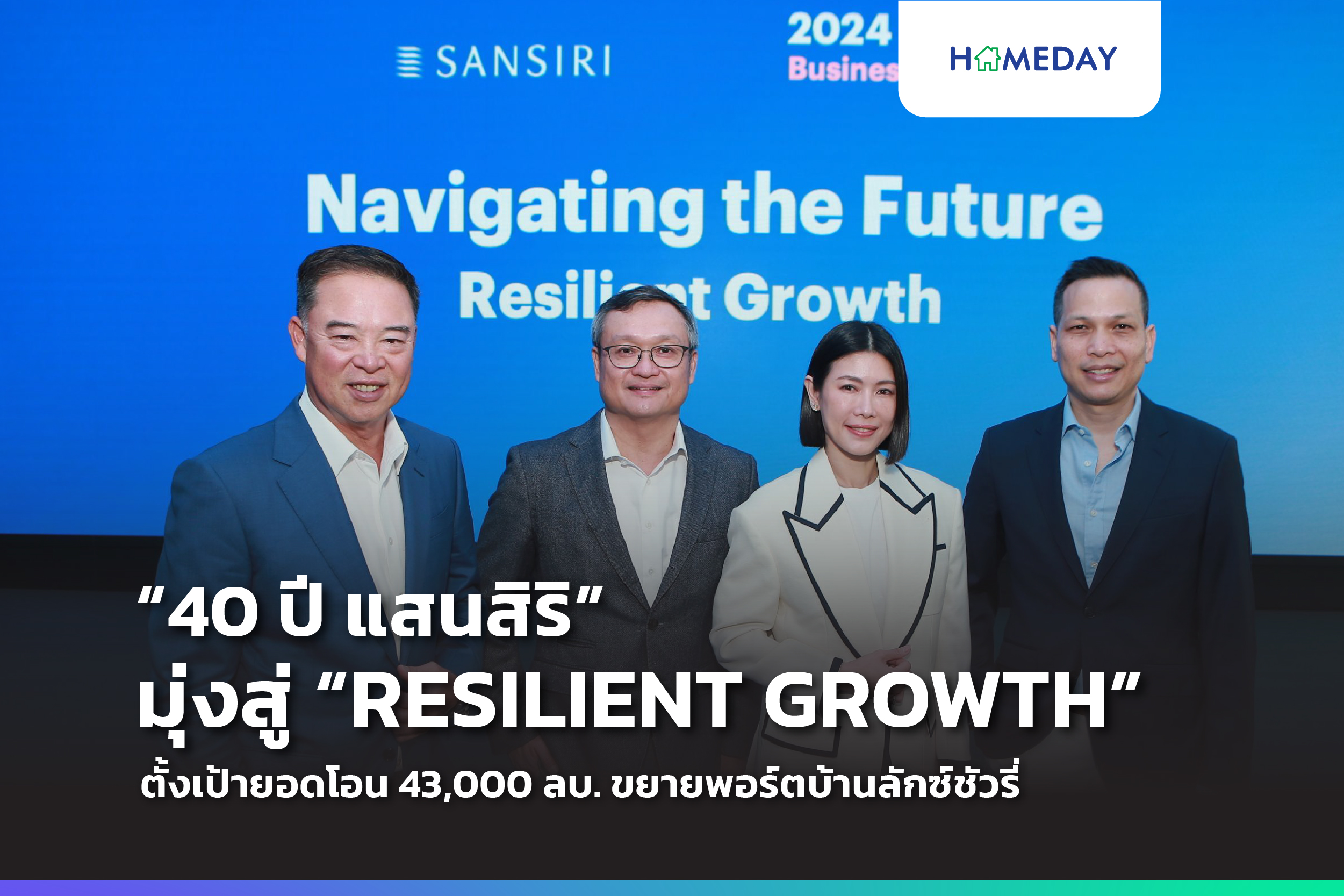 RESILIENT GROWTH – ยืนหยัด ยั่งยืน นายอภิชาติ จูตระกูล ประธานเจ้าหน้าที่บริหาร บริษัท แสนสิริ จำกัด (มหาชน) หรือ SIRI ผู้นำกลุ่มธุรกิจพัฒนาอสังหาริมทรัพย์ของประเทศ เปิดเผยว่า ในปี 2567 ถือเป็นปีแห่งการเติบโตที่สำคัญที่ แสนสิริ ก้าวเข้าสู่ปีที่ 40 กว่าจะเป็นแสนสิริ องค์กรชั้นนำที่เป็นหนึ่งในเป้าหมายการเข้าทำงานของคนรุ่นใหม่ เราผ่านวิกฤตมาหลายต่อหลายครั้ง ซึ่งวิกฤตกับโอกาสเป็นของคู่กัน ทุกวิกฤตทำให้เราแข็งแกร่ง และเติบโตขึ้น เราไม่ได้เติบโตเพราะอยู่นาน แต่เป็นเพราะเราพร้อมเปลี่ยนแปลง รวดเร็ว ต่อเนื่อง ด้วยศักยภาพของคนที่ถูกบ่มเพาะ ภายใต้ดีเอ็นเอเดียวกัน คือ SPEED TO MARKET, ATTENTION TO DETAIL และ WORK FROM HEART และในโอกาสก้าวสู่ปีที่ 40 แสนสิริพร้อมประกาศแผนธุรกิจ ด้วยแนวทาง “RESILIENT GROWTH – ยืนหยัด ยั่งยืน” โดยนำศักยภาพ ความเชี่ยวชาญ นวัตกรรม มาต่อยอดธุรกิจ และขับเคลื่อนการทำงานในองค์รวม เพื่อส่งมอบสินค้าและบริการให้กับผู้บริโภคอย่างตรงใจและโดดเด่นเหนือคู่แข่ง