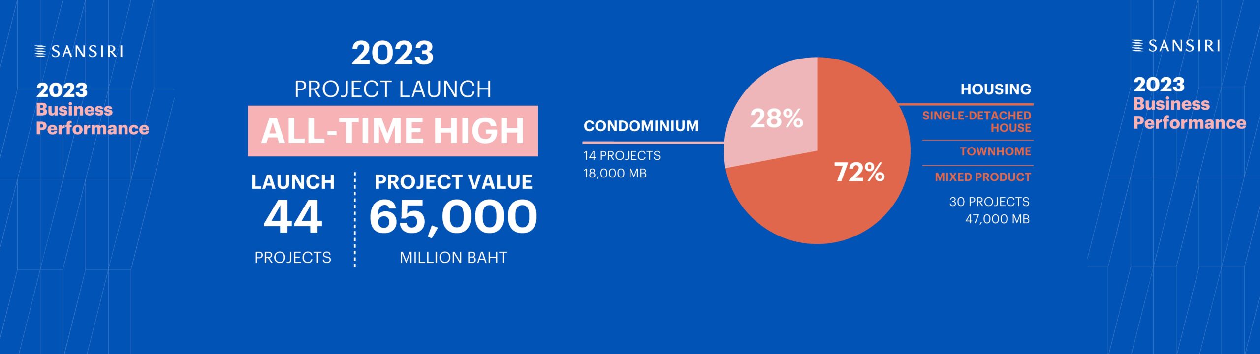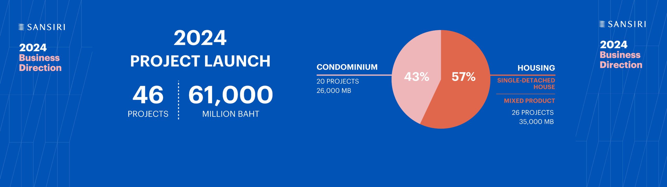 สำหรับโครงการที่เปิดตัวมีทั้งการต่อยอดความสำเร็จแบรนด์นาราสิริและบูก้าน ในกลุ่ม Sansiri Luxury Collection ตลอดจนการรีเฟรชแบรนด์เศรษฐสิริและดีคอนโด ส่วนการเปิดตัวโครงการแนวสูงนั้น ก็มีการเปิดตัว “ดีคอนโด” ซีรีส์ใหม่ 6 โครงการ 6 ทำเลศักยภาพ ทั่วประเทศ รวมมูลค่าโครงการกว่า 6,300 ล้านบาท เจาะทำเลคอมมูนิตี้ใหญ่ ใกล้มหาวิทยาลัยและแหล่งงาน ทั้งในกรุงเทพฯ หาดใหญ่ และภูเก็ต รวมถึงการกลับมาของคอนโดมิเนียมระดับบน ได้แก่ ชูช์ ราชเทวี และเวีย อารีย์ ตลอดจนคอนโดมิเนียมแบรนด์ใหม่