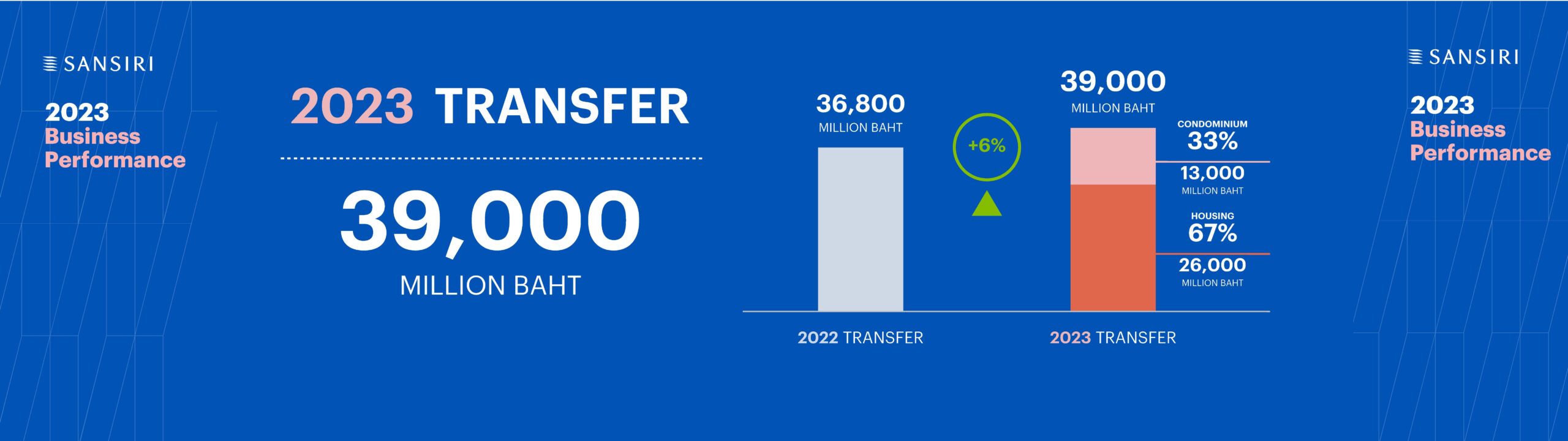 ส่งผลให้แสนสิริสร้างยอดขายในปี 2566 ได้ 49,000 ล้านบาท ในขณะที่ยอดโอน (รวมโครงการร่วมทุน) อยู่ที่ 39,000 ล้านบาท และสามารถ Sold Out ได้ถึง 28 โครงการ มูลค่าโครงการรวม 51,000 ล้านบาท