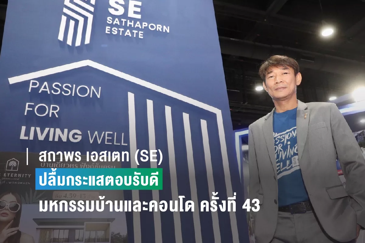 สถาพร เอสเตท (SE) ปลื้มกระแสตอบรับดีเกินคาด หลังนำทัพบ้านเดี่ยว ทาวน์โฮม และคอนโดมิเนียม บนหลากหลายทำเลคุณภาพ ทั้งกรุงเทพกรีฑา, สาทร, อ่อนนุช, พระราม 4, สายไหม และ รังสิต ร่วมออกบูธภายในงาน “มหกรรมบ้านและคอนโด ครั้งที่ 43” ที่ผ่านมา ทำยอดขายรวมได้กว่า 100 ล้านบาท