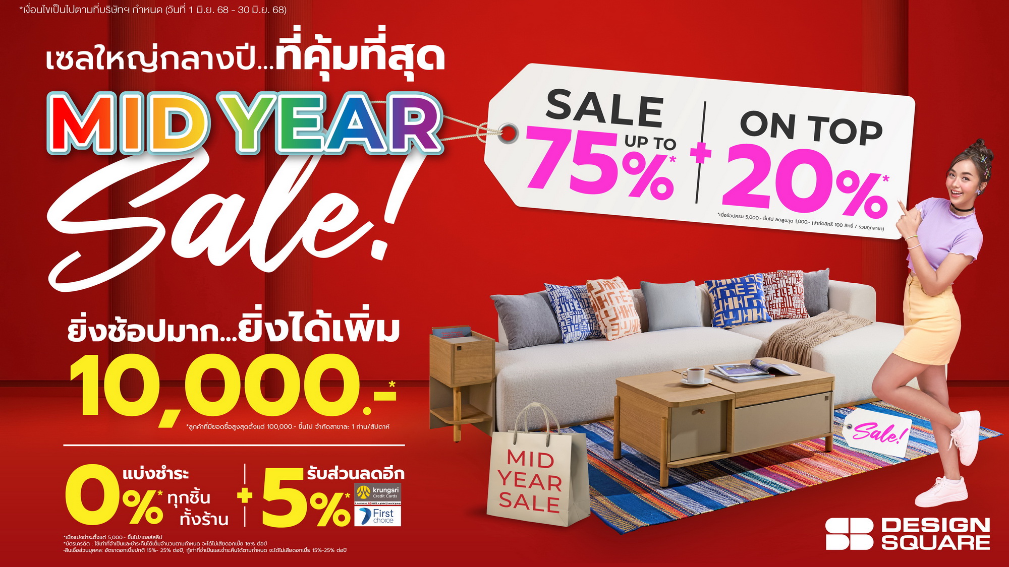 เอสบี ดีไซน์สแควร์ ชวนสายแต่งบ้านมาช้อปสนุกกับมหกรรม “MID YEAR SALE” ที่ยิ่งใหญ่ที่สุดแห่งปี ระหว่างวันที่ 1-30 มิถุนายนนี้ พร้อมจัดเต็มโปรโมชันพิเศษเพื่อลูกค้าทุกกลุ่ม ด้วยส่วนลดสูงสุดถึง 75% และยังสามารถรับส่วนลดเพิ่มอีก 20% เมื่อช้อปครบ 5,000 บาท โดยลดสูงสุด 1,000 บาท (จำกัด 100 สิทธิ์ รวมทุกสาขา) ตอกย้ำความคุ้มค่าแบบจัดเต็ม