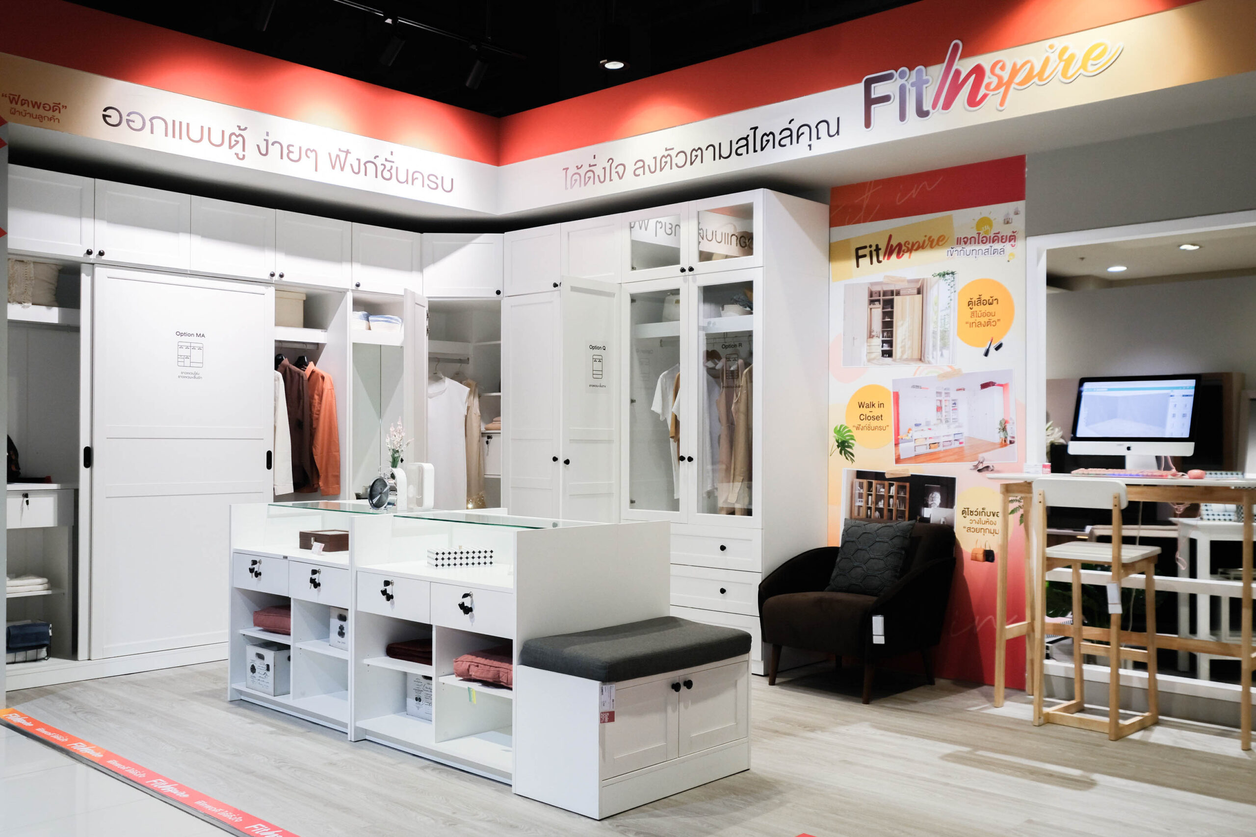 • Koncept Fit-in จากประสบการณ์ที่ผ่านมามาทำให้รู้ว่า ‘ตู้เสื้อผ้า’ รวมไปจนถึง ‘ตู้เก็บของอเนกประสงค์’ คือเฟอร์นิเจอร์ชิ้นหลักที่แต่ละคนก็มีความต้องการตู้เสื้อผ้าที่มีฟังก์ชันทั้งภายนอกและภายในที่แตกต่างกันไป Koncept Fit-in จึงถูกพัฒนาขึ้นเพื่อให้ลูกค้าได้รับประสบการณ์ใหม่ที่ทำให้ยิ้มได้ในทุกวันที่เห็นตู้เสื้อผ้าของตนเอง เพราะลูกค้าสามารถดีไซน์ฟังก์ชัน หน้าบาน และขนาดได้ตามต้องการ โดยในโซนใหม่นี้เราได้จัดทีมเจ้าหน้าที่พร้อมระบบโปรแกรมผู้ช่วยการออกแบบเบื้องต้น เพื่อนำจิตนาการของลูกค้าออกมาพัฒนาเป็นแบบให้เห็นจริง ซึ่งจะช่วยให้ลูกค้าตัดสินใจหรือปรับเปลี่ยน ตู้เสื้อผ้าที่ต้องการนั้นให้มีชีวิตขึ้นมาได้