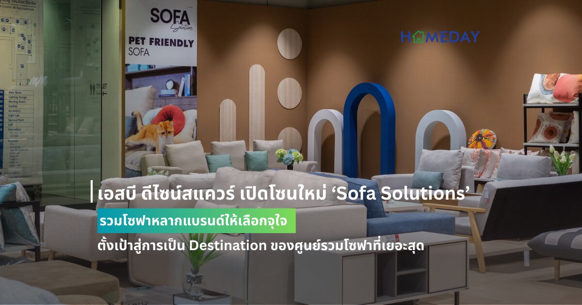 เอสบี ดีไซน์สแควร์ เนรมิตร ‘Sofa Solutions’ ศูนย์รวมโซฟาแห่งแรกที่มีให้เลือกมากกว่า 500 แบบ ทุกขนาด ทุกสไตล์ ทุกวัสดุ ทุกราคา เพื่อเติมเต็มความต้องการของลูกค้าทุกกลุ่ม เปิดให้ชมสินค้าจริงที่ เอสบี ดีไซน์สแควร์ สาขาเดอะคริสตัล เอสบี ราชพฤกษ์