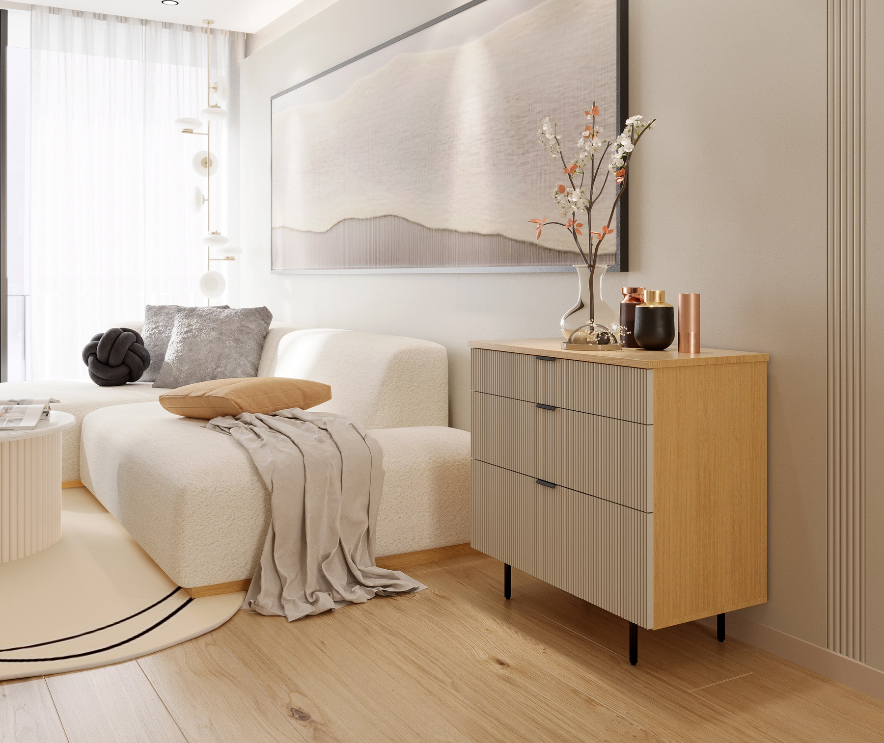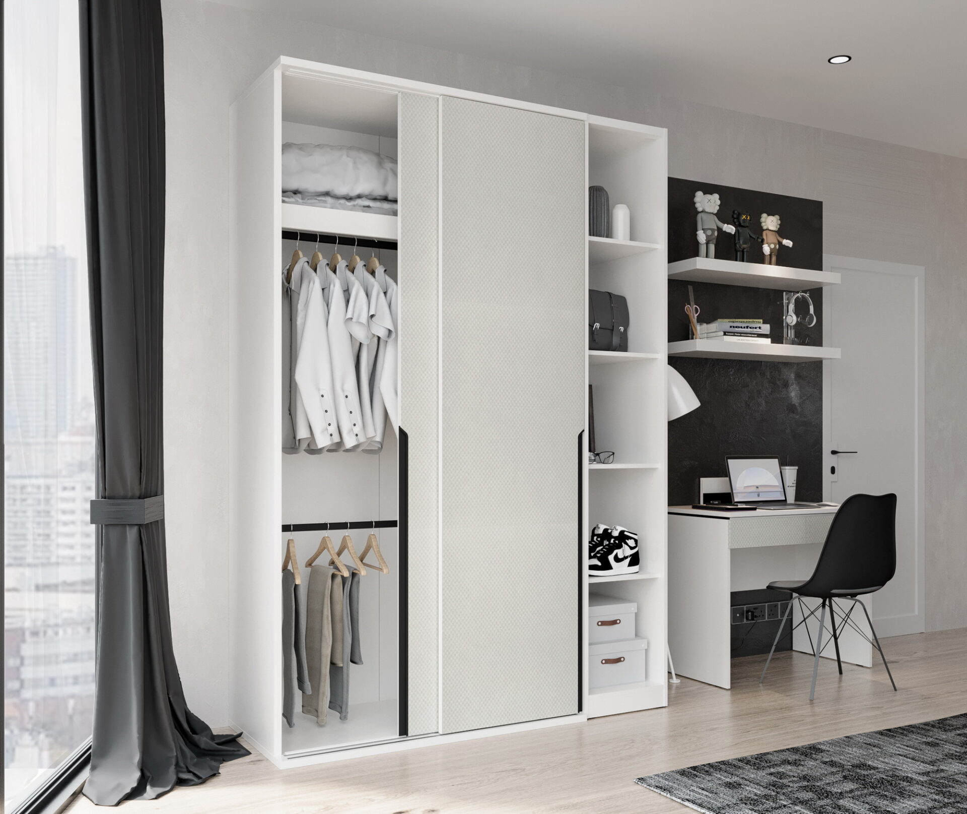 คอลเลกชันเฟอร์นิเจอร์โทนขาวแบบมีมิติในสไตล์โมเดิร์น ตัดทอนเส้นให้เป็นเหลี่ยมและมุมเส้น สะท้อนความเป็นตัวตนของผู้อยู่อาศัย พิเศษด้วย Line & Layer ลายเส้นที่ลงตัว งานออกแบบที่เพิ่มรายละเอียดด้วยเส้นสายสีดำให้ดูทันสมัยยิ่งขึ้น มาพร้อมกับ Square Matt Pattern วัสดุปิดผิวที่มีลวดลายเป็นเอกลักษณ์อย่างชัดเจน ดีไซน์ลายเส้นที่ให้ความโดดเด่นไม่เหมือนใคร ขาวสบายตา ช่วยให้ห้องดูมี space เพิ่มขึ้น เป็นคอลเลกชันที่ออกแบบให้เหมาะกับทุกพื้นที่ภายในบ้าน เพิ่มประโยชน์ใช้สอยได้ในทุกพื้นที่จัดเก็บ ให้บ้านดูสวยงามเป็นระเบียบ
