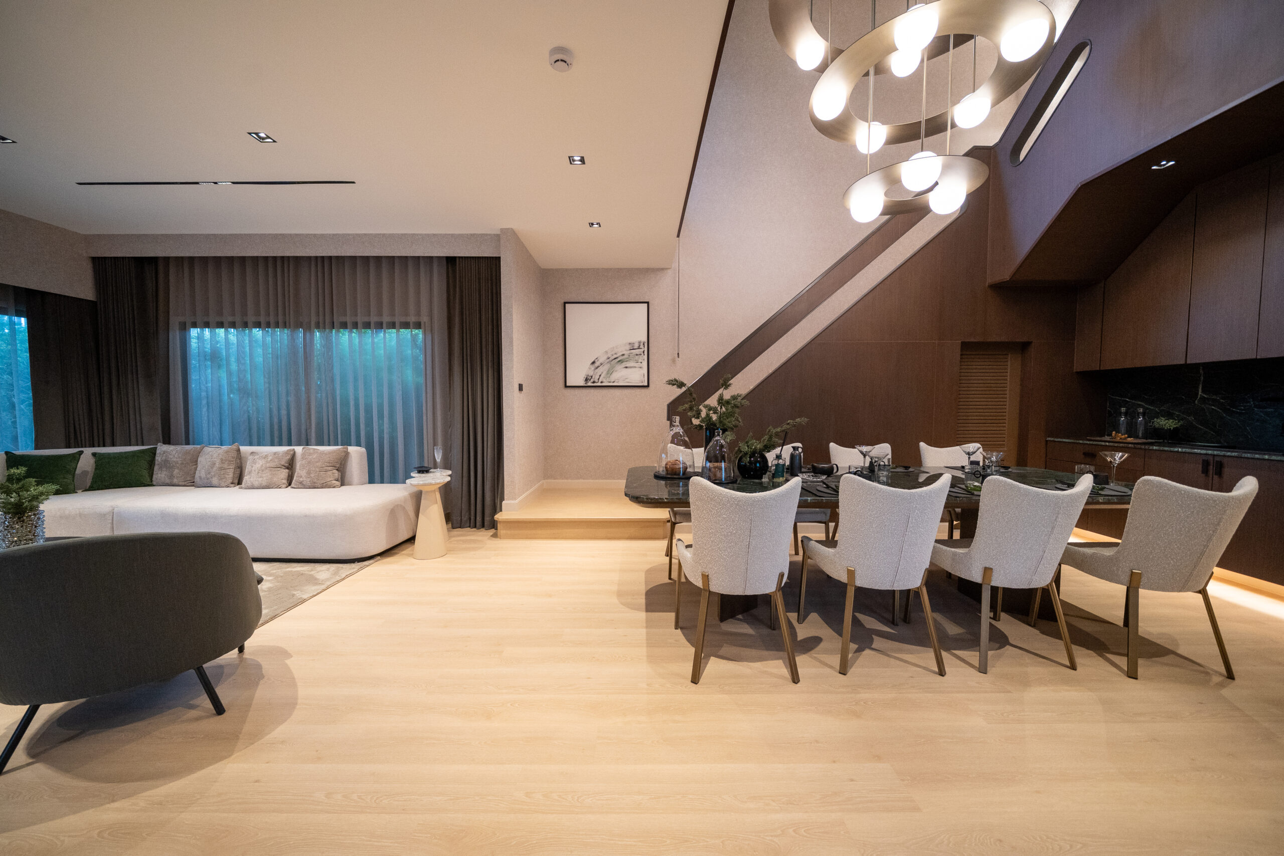 บ้านของโครงการมาพร้อมฟังก์ชันใหม่ “Vertical Form” โถงสูงกลางบ้านสูงถึง 6 เมตร ที่สร้างความรู้สึกโปร่งโล่งโอ่อ่า เหนือระดับด้วย เพิ่มความสบายตาและถ่ายเทอากาศได้ดี ทั้งยังช่วยขยายมุมมองให้บ้านดูกว้างขวางและสง่างาม พื้นที่ใช้สอย ภายในออกแบบให้สามารถใช้ได้จริง ทั้งพื้นที่ส่วนกลางขนาดใหญ่ ห้องนอนแยกเป็นสัดส่วน และพื้นที่พักผ่อนที่ให้ความเป็นส่วนตัว โดยมีพื้นที่สูงสุดถึง 310 ตารางเมตร รองรับได้ทั้งครอบครัวใหญ่ และผู้ที่ต้องการพื้นที่ส่วนตัวมากขึ้น ช่วยให้ทุกคนในครอบครัวสามารถใช้ชีวิตได้อย่างลงตัว