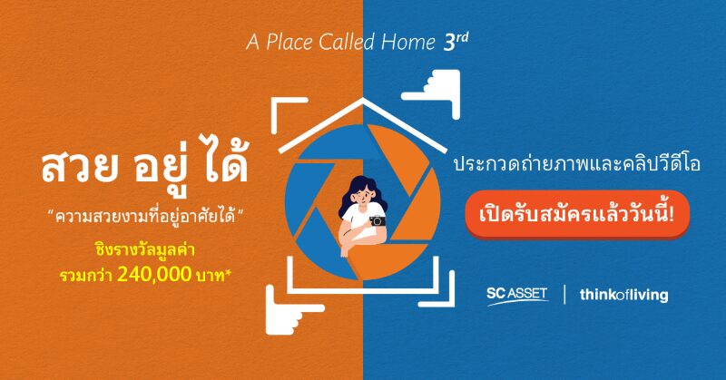 SC ASSET X Think of Living จัดกิจกรรม A Place Called Home ครั้งที่ 3 ชวนร่วมประกวดถ่ายภาพบ้าน 4 โครงการใหม่ ในคอนเซ็ปต์ “สวยอยู่ได้” ลุ้นรางวัลกว่า 240,000 บาท