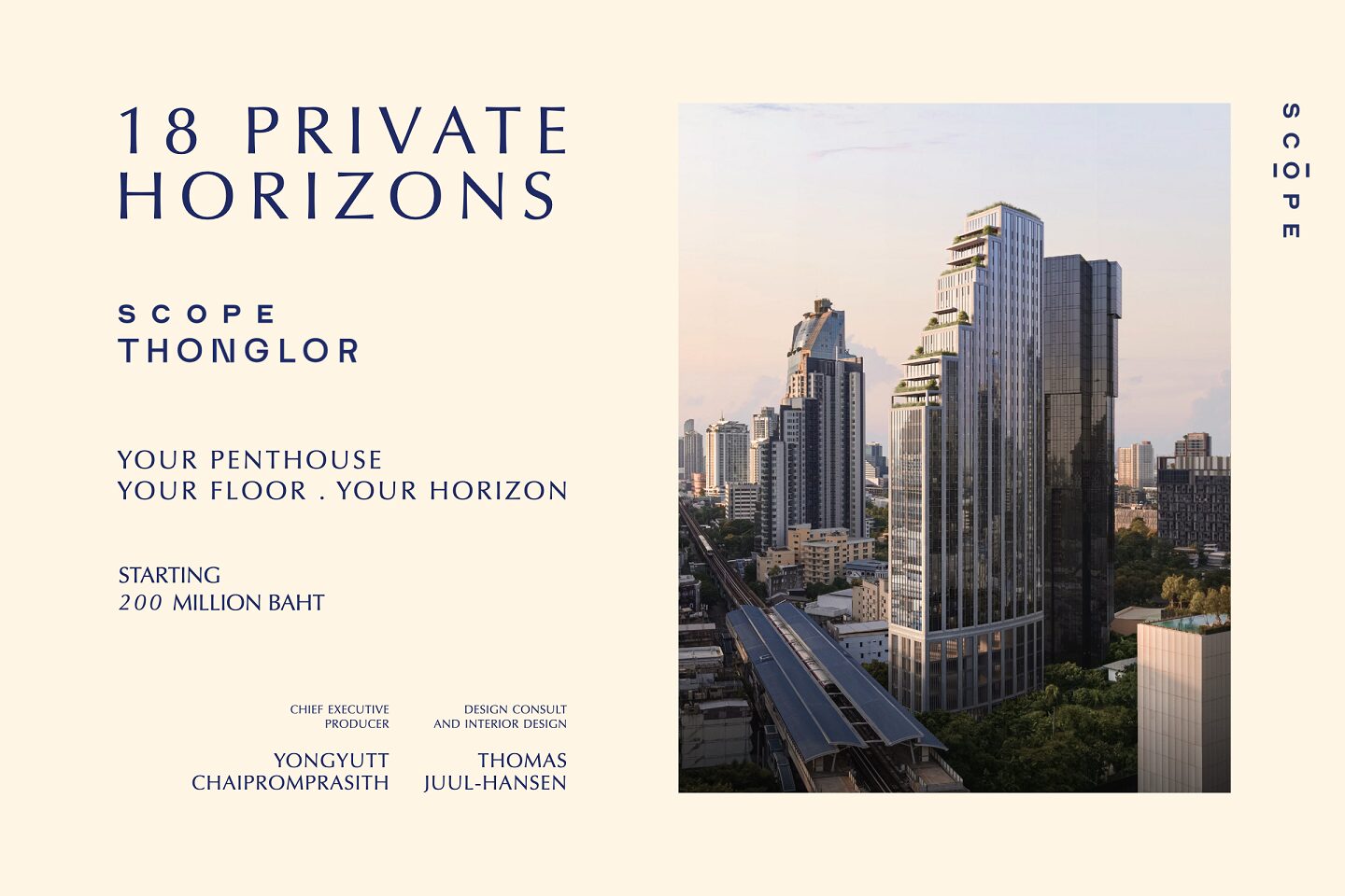 กรุงเทพฯ – บริษัท สโคป จำกัด ผู้พัฒนาโครงการที่อยู่อาศัยระดับอัลตร้าลักชัวรี เปิดตัว The Penthouse of Penthouses ที่โครงการ SCOPE Thonglor – Triplex Residence เพียงหนึ่งเดียว บนที่ดินที่ดึงดูดที่สุด ในกรุงเทพฯ ถูกออกแบบให้ยืนเหนือทุกเพนต์เฮาส์ ทั้งในด้านดีไซน์ ขนาด ฟังก์ชัน รสนิยม และการครอบครอง ครอบคลุมพื้นที่ 3 ชั้น ขนาด 765 ตารางเมตร พร้อมวิวและแสงธรรมชาติรอบทิศทาง 360 องศาและเป็นฝีมือการออกแบบของ Thomas Juul-Hansen (โธมัส จูล-แฮนเซน) ดีไซเนอร์ชื่อดังเจ้าของผลงานเพนท์เฮาส์ที่แพงที่สุดทั้งในนิวยอร์ก และลอนดอน คุณยงยุทธ ชัยพรหมประสิทธิ์ ประธานเจ้าหน้าที่บริหาร บริษัท สโคป จำกัด กล่าวว่า “Triplex Residence ไม่ได้เป็นเพียงที่อยู่อาศัย หากแต่เป็นบทพิสูจน์วิสัยทัศน์อันล้ำค่าของ SCOPE เหตุผลในการดำรงอยู่ของเราคือการพิสูจน์ว่า ‘ความเป็นไปได้’ [...]