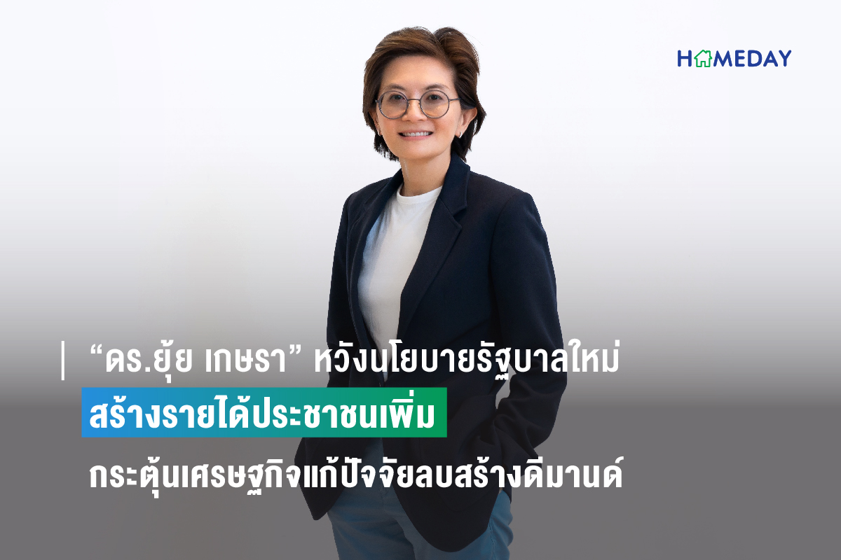 “ดร.ยุ้ย เกษรา” ผู้พัฒนาอสังหาฯ รอประเมินนโยบายเศรษฐกิจรัฐบาลใหม่ หนุนสร้างกำลังซื้อที่อยู่อาศัย บนปัจจัยที่ยังเป็นอุปสรรค ทั้งดอกเบี้ย รายได้ และภาระหนี้ครัวเรือน หวังรัฐบาลแก้ทั้ง 3 เรื่อง เพื่อให้คนไทยมีที่อยู่อาศัยเป็นของตนเอง เตรียมแผนเคลื่อนปี 2567 เพิ่มกลยุทธ์นอกเหนือจากการขายโครงการ เน้นการนำนวัตกรรมการเงิน เพื่อให้เข้าถึงที่อยู่อาศัยในรูปแบบใหม่