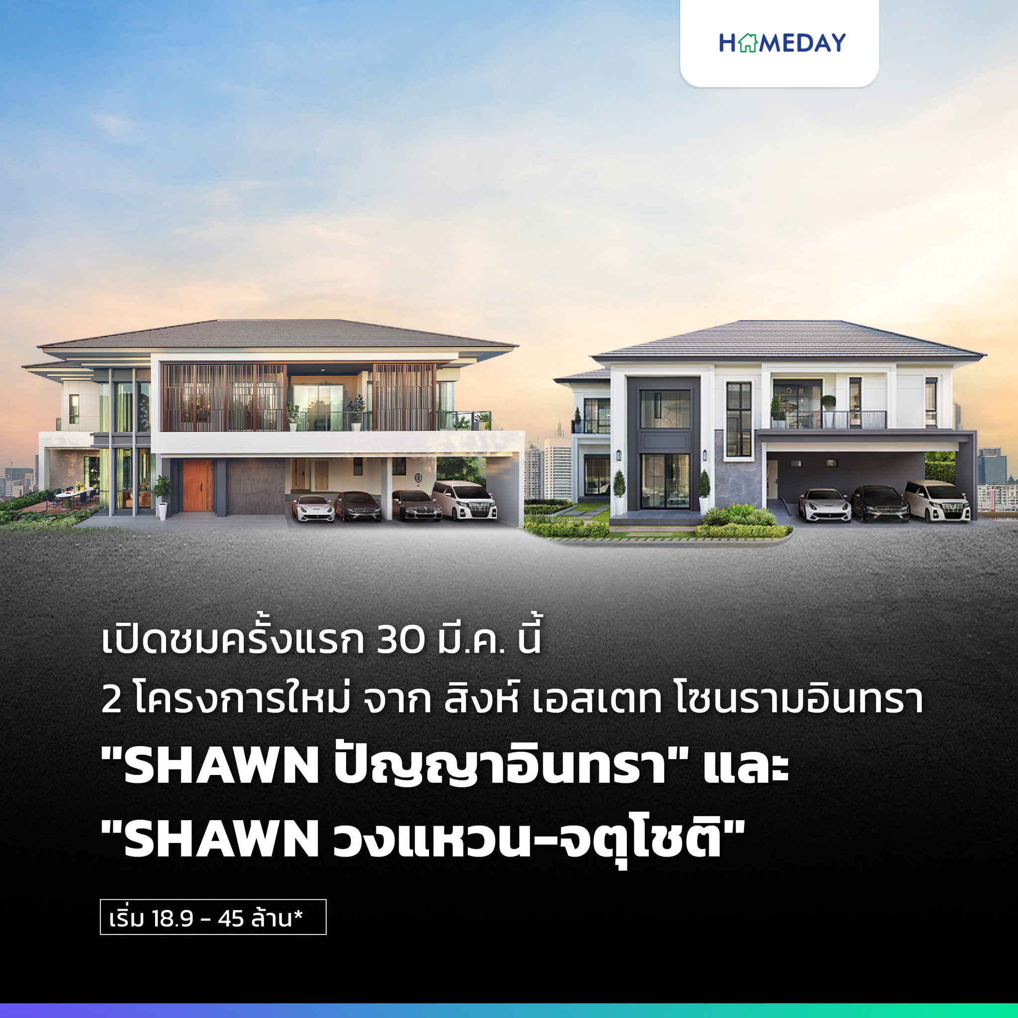 “SHAWN ปัญญาอินทรา” และ “SHAWN วงแหวน-จตุโชติ” ในราคาเริ่มต้นที่ 18.9 – 45 ล้าน*