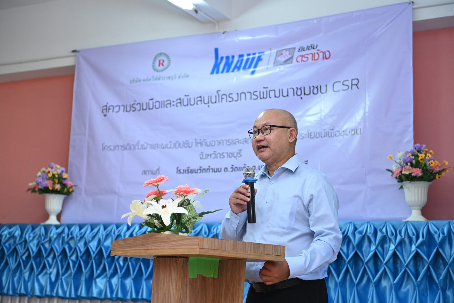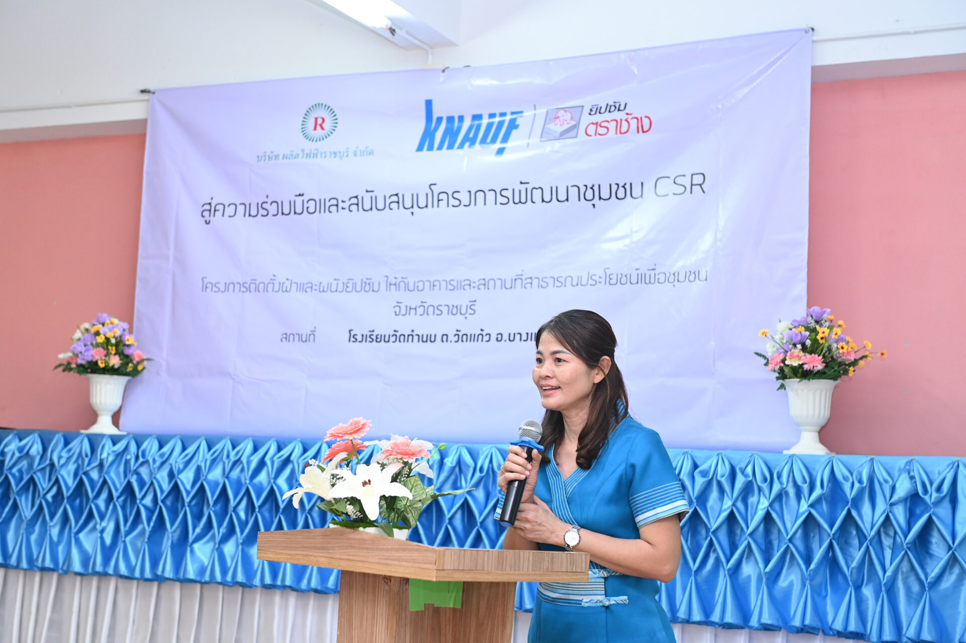 คุณจตุพร โสภารักษ์ กรรมการผู้จัดการ บริษัท ผลิตไฟฟ้าราชบุรี จำกัด กล่าวว่า “โครงการติดตั้งฝ้าและผนังยิปซัมให้กับอาคารและสถานที่สาธารณประโยชน์เพื่อชุมชนในจังหวัดราชบุรี เป็นกิจกรรมที่เราตั้งใจคัดเลือกโรงเรียน หรือชุมชนที่ต้องการความช่วยเหลือในการปรับปรุงซ่อมแซมอาคาร สภาพแวดล้อมในจังหวัดราชบุรี นับว่าเป็นเรื่องน่ายินดีอย่างยิ่งที่เราได้ร่วมมือกับสยามยิปซัม ที่เล็งเห็นถึงความตั้งใจที่พัฒนาชุมชนในจังหวัดราชบุรีเช่นเดียวกัน จึงทำให้โครงการดังกล่าวดำเนินการมาแล้วถึงปีที่ 4 และหวังว่าจะได้ร่วมงานกับ สยามยิปซัมในการจัดทำโครงการนี้ในปีถัด ๆ ไป”