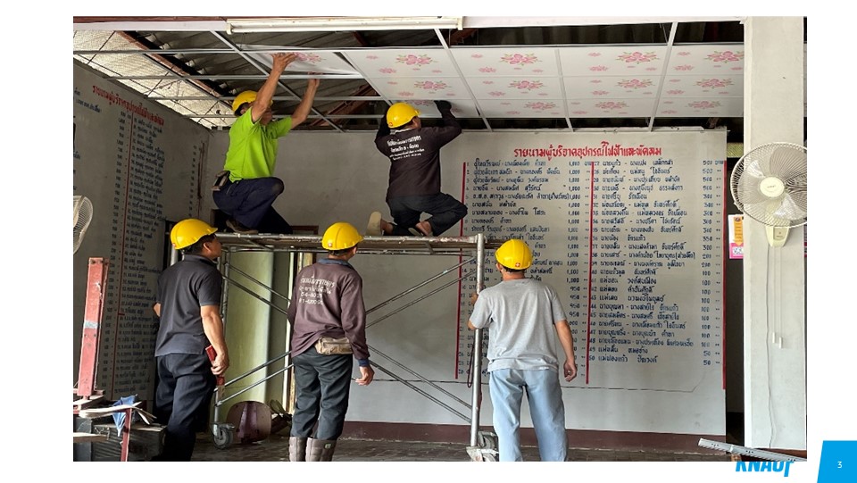 “เราต้องการขยายผลความสำเร็จของโครงการที่เป็นรูปธรรม นั่นคือการพัฒนาอาคาร สถานที่ชุมชน ให้เกิดการใช้งานจริง เราดำเนินการปรับปรุงฝ้า ผนังภายในของโรงเรียนและอาคารส่วนรวมชุมชน ผ่านการร่วมมือร่วมแรงระหว่างทีมงานยิปซัมตราช้าง ช่างชุมชน และชาวบ้าน ผ่านหลักสูตรการอบรมนี้ทั่วประเทศ” คุณอนุพงษ์กล่าวเสริม