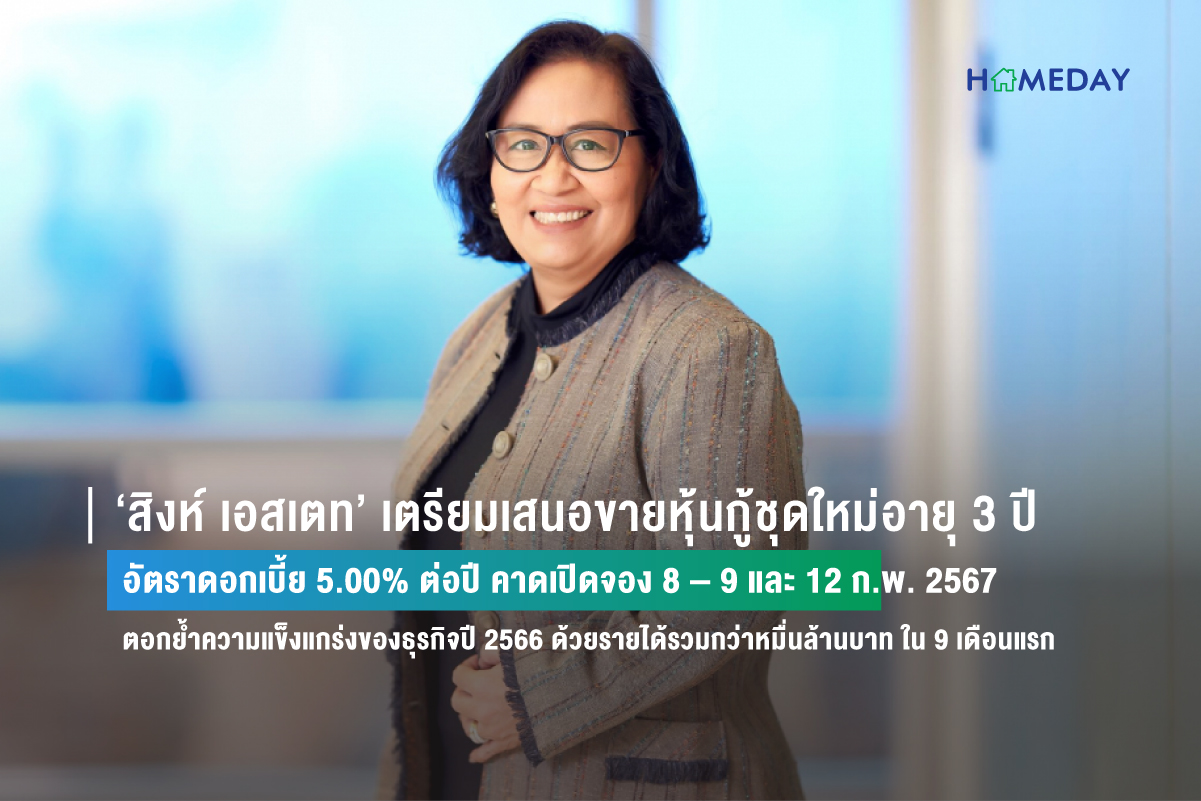 หลังจากประสบความสำเร็จจากการเสนอขายหุ้นกู้ในปี 2566 ที่ผ่านมา โดยปิดการขายรวมมูลค่าเสนอขายทั้งสิ้น 1,700 ล้านบาท ตอกย้ำความมั่นใจและไว้วางใจของผู้ลงทุนต่อการเติบโตของธุรกิจกลุ่ม บริษัท สิงห์ เอสเตท จำกัด (มหาชน) หรือ ‘S’ เตรียมพร้อมที่จะเสนอขายหุ้นกู้ชุดใหม่ ต่อประชาชนเป็นการทั่วไป โดยปัจจุบันบริษัทฯ ได้ยื่นคำขออนุญาตและแบบแสดงรายการข้อมูลตราสารหนี้ (filing) เพื่อเสนอขายหุ้นกู้ชนิดระบุชื่อผู้ถือ ประเภทไม่ด้อยสิทธิ ไม่มีประกัน และมีผู้แทนผู้ถือหุ้นกู้ ต่อสำนักงานคณะกรรมการกำกับหลักทรัพย์และตลาดหลักทรัพย์ (ก.ล.ต.) โดยเป็นหุ้นกู้อายุ 3 ปี อัตราดอกเบี้ย 5.00% ต่อปี ชำระดอกเบี้ยทุก ๆ 3 เดือน กำหนดจองซื้อขั้นต่ำ 100,000 บาท ทวีคูณครั้งละ 100,000 บาท โดยคาดว่าจะเสนอขายต่อประชาชนเป็นการทั่วไประหว่างวันที่ 8-9 และ 12 ก.พ. 2567 โดยบริษัทฯ ได้แต่งตั้งสถาบันการเงิน 3 แห่ง เป็นผู้จัดการการจัดจำหน่ายหุ้นกู้ ประกอบด้วย ธนาคารกรุงไทย ธนาคารกสิกรไทย และบริษัทหลักทรัพย์ เกียรตินาคินภัทร