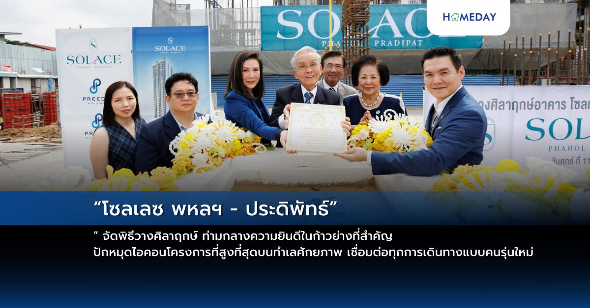 นายวิชัย ชื่นชมพูนุท อดีตรองประธานศาลฎีกา, อดีตศาลรัฐธรรมนูญ และรองประธานศาลปกครองสูงสุด ประธานในพิธีวางศิลาฤกษ์งานก่อสร้างโครงการ “โซลเลซ พหลฯ – ประดิพัทธ์ (Solace Phahol Pradipat)” พร้อมทีมผู้บริหารเข้าร่วมโดย นายปิติพัฒน์ ปรีดานนท์ กรรมการผู้จัดการ บริษัท ปรีดา โฮลดิ้ง จำกัด ร่วมด้วย นางสาวปิยะฉัตร ปรีดานนท์ กรรมการผู้จัดการ บริษัท ปรีดา เรียล เอสเตส จำกัด พร้อมด้วย นายกฤษณะ ปรีดานนท์ ประธานกรรมการบริหาร และนางพจมาน ปรีดานนท์ กรรมการบริหาร บริษัท ปรีดา เรียล เอสเตส จำกัด รวมถึงนายปาล์ม ปรีดานนท์ กรรมการบริหาร บริษัท ปรีดา เรียล เอสเตส จำกัด พร้อมพันธมิตรด้านการก่อสร้างและซัพพลายเออร์วัสดุก่อสร้างที่มีส่วนร่วมในการก่อสร้างอาคารนี้ให้สำเร็จทุกภาคส่วนร่วมแสดงความยินดีอย่างคับคั่ง นอกจากนี้ยังมีคณะกรรมการและที่ปรึกษาสมาคมอาคารชุดไทย และตัวแทนจากสถาบันการเงินร่วมเป็นสักขีพยานในก้าวย่างที่สำคัญ และการก่อสร้างคืบหน้าเป็นไปตามเป้าหมาย พร้อมกับแสดงความมั่นใจในแผนการก่อสร้างที่คาดว่าสิ้นปีนี้จะก่อสร้างขึ้นไปถึงชั้น 7 และสิ้นปี 2568 โครงสร้างจะก่อสร้างเสร็จสมบูรณ์ถึงชั้น 50 พร้อมส่งมอบไตรมาสที่ 4/2569