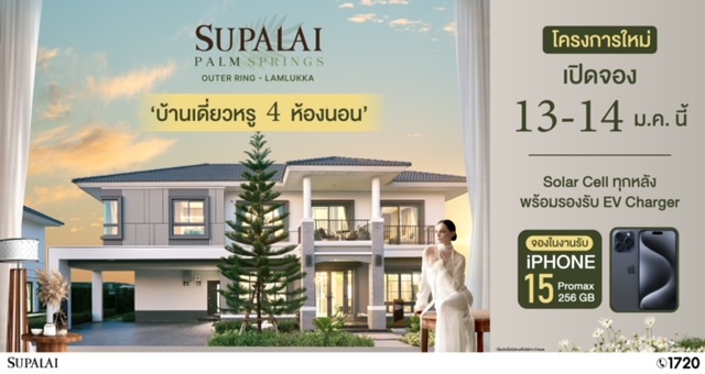 เป็นเจ้าของได้แล้ววันนี้ กับสุดยอดโครงการคุณภาพ “บ้านรักษ์โลก” ศุภาลัย ปาล์มสปริงส์ วงแหวน- ลำลูกกา เพียบพร้อมด้วยสิ่งอำนวยความสะดวกครบครันมาพร้อม พื้นที่สีเขียวกว่า 1 ไร่ ให้คุณเดินเล่นเพลิดเพลินกับ สวนส่วนกลาง, สนามเด็กเล่น, สโมสรมาพร้อมห้องอเนกประสงค์, ฟิตเนสและสระว่ายน้ำระบบน้ำแร่ รวมทุกกิจกรรมครบจบในโครงการเดียว ในราคาเริ่มต้น 6.99 ล้านบาท* สามารถลงทะเบียนเพื่อรับส่วนลด 200,000 บาท* ผ่านลิ้งก์ https://bit.ly/3SCZOZx และเมื่อจองภายในงาน Pre-Sales 13-14 มกราคม 2567 รับ iPhone 15 Pro Max 256 GB* (เงื่อนไขเป็นไปตามที่บริษัทฯ กำหนด) เยี่ยมชมบ้านตัวอย่างได้แล้ววันนี้ ณ สำนักงานขาย โครงการ ศุภาลัย ปาล์มสปริงส์ วงแหวน-ลำลูกกา