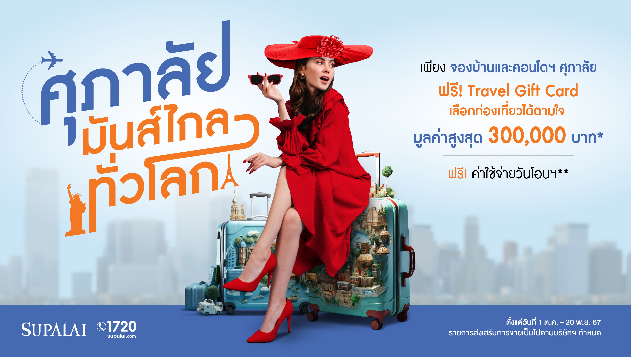 ความน่าสนใจของโปรโมชันใหม่ล่าสุดอยู่ที่เมื่อจองบ้านและคอนโดมิเนียมที่สร้างเสร็จ พร้อมโอนกรรมสิทธิ์ จากโครงการของศุภาลัยที่มีให้เลือกกว่า 200 โครงการทั่วประเทศ เลือกรับทันที Travel Gift Card มูลค่าสูงสุด 300,000 บาท* สำหรับใช้เดินทางท่องเที่ยวได้ตามใจทั่วโลก ลูกค้าจะมีทางเลือกที่หลากหลายและสามารถหาที่อยู่อาศัยที่ตรงกับความต้องการของตนเองได้ง่ายขึ้น ไม่เพียงแต่จะได้บ้านหรือคอนโดมิเนียมที่มีคุณภาพ แต่ยังเป็นการลงทุนที่คุ้มค่าในระยะยาว