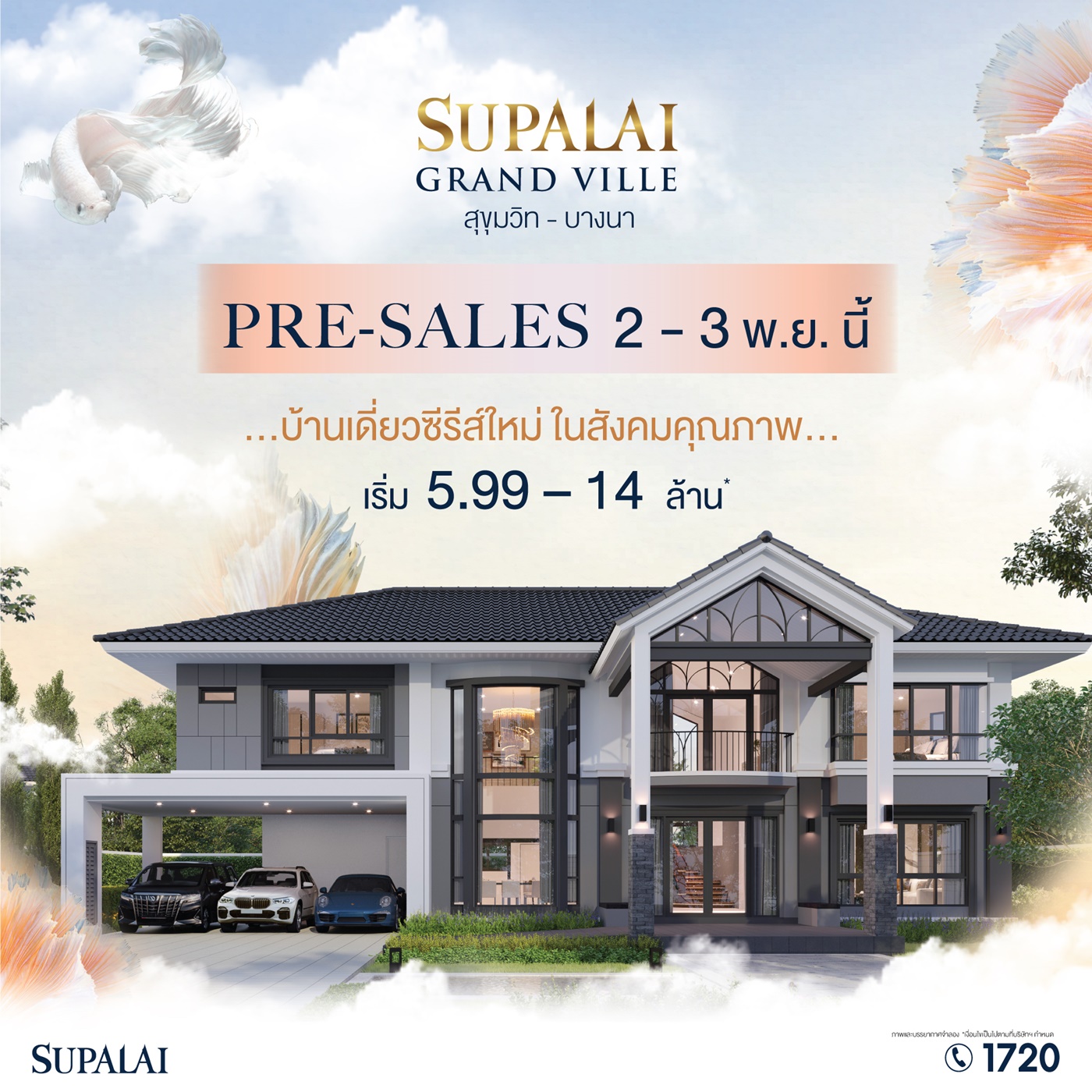 เปิดบ้านให้ผู้ที่กำลังมองหาที่อยู่อาศัยสำหรับตนเองและครอบครัว จับจองเป็นเจ้าของก่อนใคร พบแบบบ้าน ซีรีส์ใหม่ Tropical Modern กับโครงการศุภาลัย แกรนด์วิลล์ สุขุมวิท-บางนา พิเศษ! สำหรับลูกค้าที่ลงทะเบียนและ จองบ้านภายในงาน รับเพิ่มบัตรกำนัลเซ็นทรัล 100,000 บาท* เฉพาะช่วง Pre-Sales 2-3 พฤศจิกายนนี้เท่านั้น! ได้ที่ https://bit.ly/4gOJlei (*เงื่อนไขเป็นไปตามที่บริษัทฯ กำหนด) ติดตามข้อมูลของโครงการได้ที่ www.supalai.com หรือสอบถามข้อมูลโทร.1720
