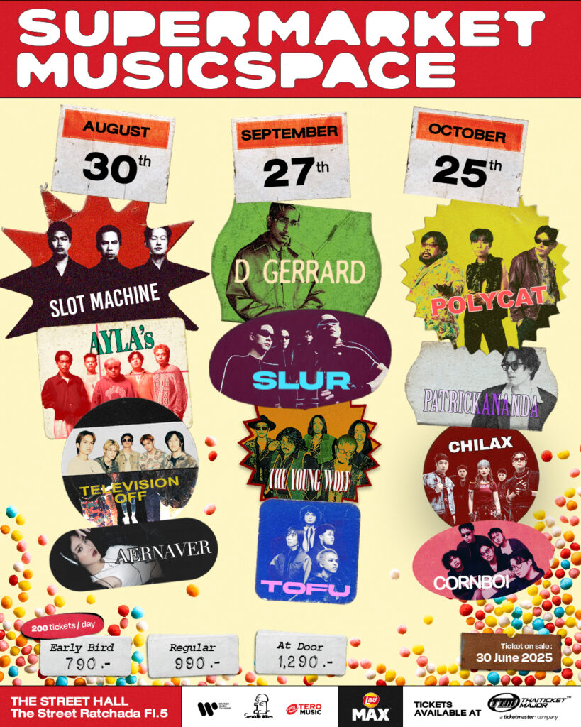 เปิด Shopping Mall แห่งเสียงดนตรีกับ “Supermarket Music Space” ให้แฟนๆ ได้เลือกสรรช้อปปิ้งความสุขทางดนตรีแบบ Mix Shelf ไปกับศิลปินคุณภาพมากมายจาก 3 ค่ายเพลงแถวหน้าของเมืองไทย อย่าง Smallroom, Warner Music Thailand และ Tero Music พร้อมจัดโปรพิเศษแรงทะลุเชลฟ์กับโปรโมชั่น Early Surprise ซื้อ 1 แถม 1 ในราคา 790 บาท (ในวันและรอบเดียวกัน) เฉลี่ยเพียงใบละ 395 บาทเท่านั้น Shelf 1 วันที่ 30 สิงหาคม 2568 พบกับศิลปิน SLOT MACHINE, AYLA’s, TELEVISION OFF และ AERNAVER จองบัตรได้ที่ [...]