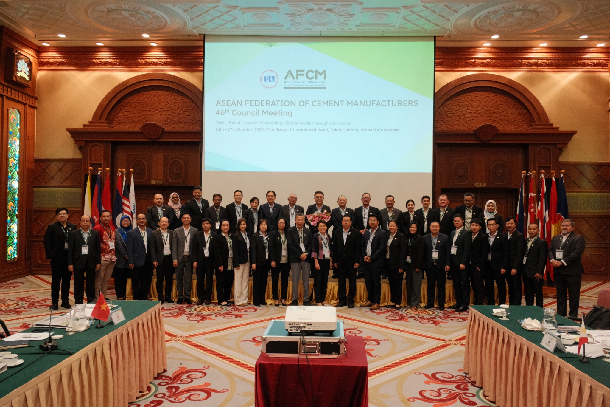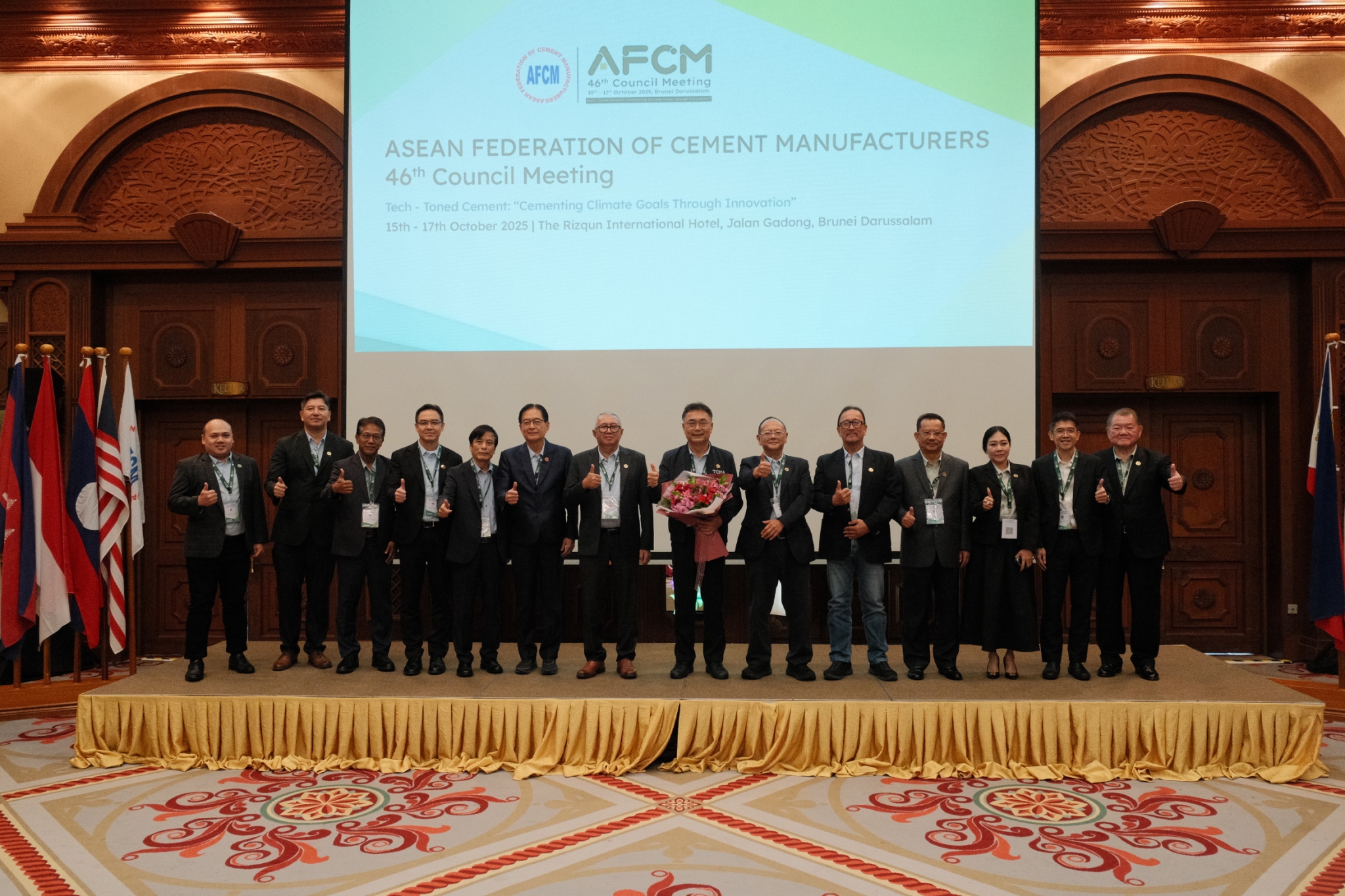 นายนภดล รมยะรูป อุปนายก TCMA และหัวหน้าคณะผู้แทนไทย สะท้อนภาพการเข้าร่วมประชุมสภาผู้ผลิตปูนซีเมนต์แห่งอาเซียน (AFCM) ครั้งที่ 46 จัดขึ้นที่เมืองหลวงของประเทศบรูไน ดารุสซาลาม ภายใต้แนวคิด Cementing Climate Goals through Innovations หรือ การผสานเป้าหมายด้านสภาพภูมิอากาศผ่านนวัตกรรม ร่วมกับสมาคมผู้ผลิตปูนซีเมนต์ชั้นนำจาก 8 ประเทศสมาชิกอาเซียน ที่เข้าร่วมประชุมอย่างพร้อมเพรียง บรูไน (Heidelberg Materials Butra Sdn) กัมพูชา (Cambodia Cement Manufacturing Association: CCMA) อินโดนีเซีย (Indonesia Cement Association: ICA) มาเลเซีย (The Cement & Concrete Association of Malaysia: C&CA) ฟิลิปปินส์ (Cement Manufacturers Association of the Philippines: CeMAP) สิงคโปร์ (Cement and Concrete Association of Singapore: CNCAS) เวียดนาม (Vietnam National Cement Association: VNCA) และไทย (Thai Cement Manufacturers Association: TCMA)