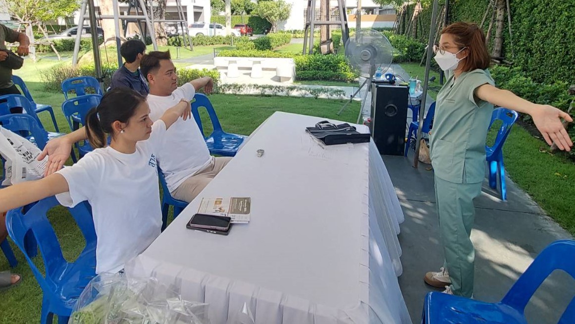 เริ่มด้วยการทำบุญสังฆทาน จากนั้นทำบุญตักบาตรอาหารแห้ง และเมื่ออิ่มบุญกันแล้ว คอนเฟิร์มสุขภาพดีกันหน่อย โดยพกความฟิตกันมาตั้งแต่เช้า ไปกับโฮมมี่ เวลเนส บาย นิวตั้น เอ็ม ในกิจกรรม “Thanasiri Healthy Day” ตรวจประเมินความตึงตัวของเส้นประสาทแขน และยืดเหยียดผ่อนคลายกับท่าง่ายๆ ที่ทีมนักกายภาพนำมาฝากกัน