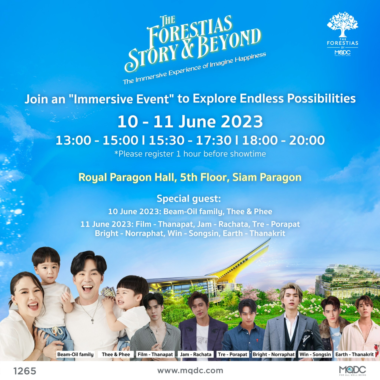 MQDC (บริษัท แมกโนเลีย ควอลิตี้ ดีเวล็อปเม้นต์ คอร์ปอเรชั่น จำกัด) หนึ่งในบริษัทผู้พัฒนาอสังหาริมทรัพย์ชั้นนำของประเทศไทย ประกาศจัดงานยิ่งใหญ่ “The Forestias Story & Beyond” ตื่นตาตื่นใจไปกับการอัพเดทความคืบหน้าของส่วนประกอบสำคัญต่างๆ พร้อมการเปิดตัวโครงการใหม่ล่าสุด ใน “เดอะ ฟอเรสเทียส์” วันเสาร์ที่ 10 และวันอาทิตย์ที่ 11 มิถุนายนนี้ วันละ 3 รอบ ได้แก่ รอบเวลา 13.00-15.00 น., รอบเวลา 15.30-17.30, และรอบเวลา 18.00-20.00 น. ที่รอยัล พารากอน ฮอลล์ ชั้น 5 สยามพารากอน