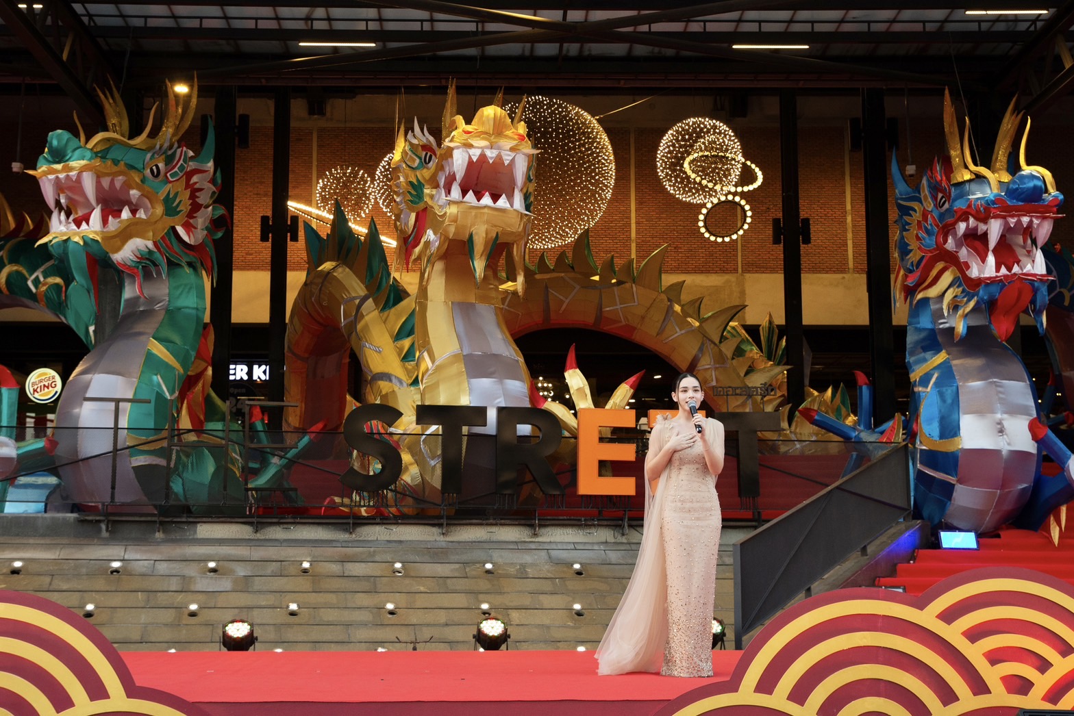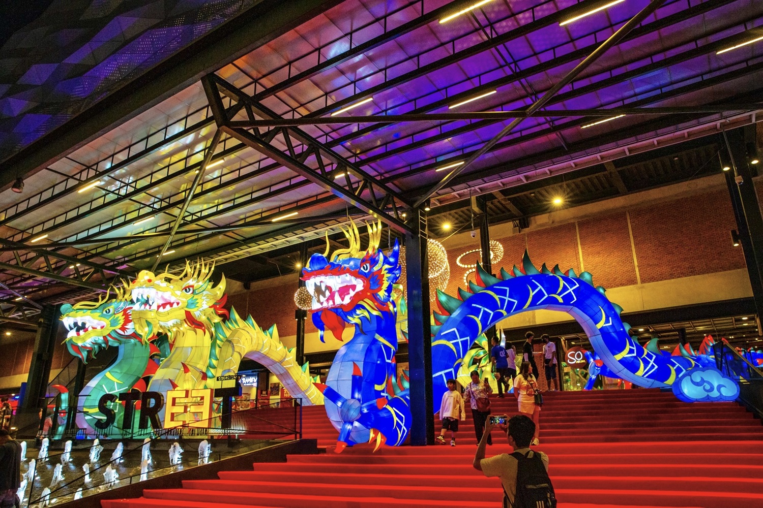เดอะ สตรีท รัชดา จัดงานอีเว้นท์ใจกลางรัชดา เนรมิตศูนย์การค้าเติมความสิริมงคลรับปีมังกร และ เฉลิมฉลองครบรอบ 8 ปีของศูนย์การค้าฯ จัดแสดงครั้งแรกของโคมไฟมังกรยักษ์ 5 ธาตุ 5 สี ยาว 22 เมตร เตรียมดึงนักท่องเที่ยวทั้งชาวไทยและชาวต่างชาติเข้าร่วมชมความยิ่งใหญ่ รับพรดีๆ ช่วงส่งท้ายปีเก่าต้อนรับปีใหม่ พร้อมชวนสายมู ห้ามพลาดกับกิจกรรมลอดท้องมังกรรับพลังบวก