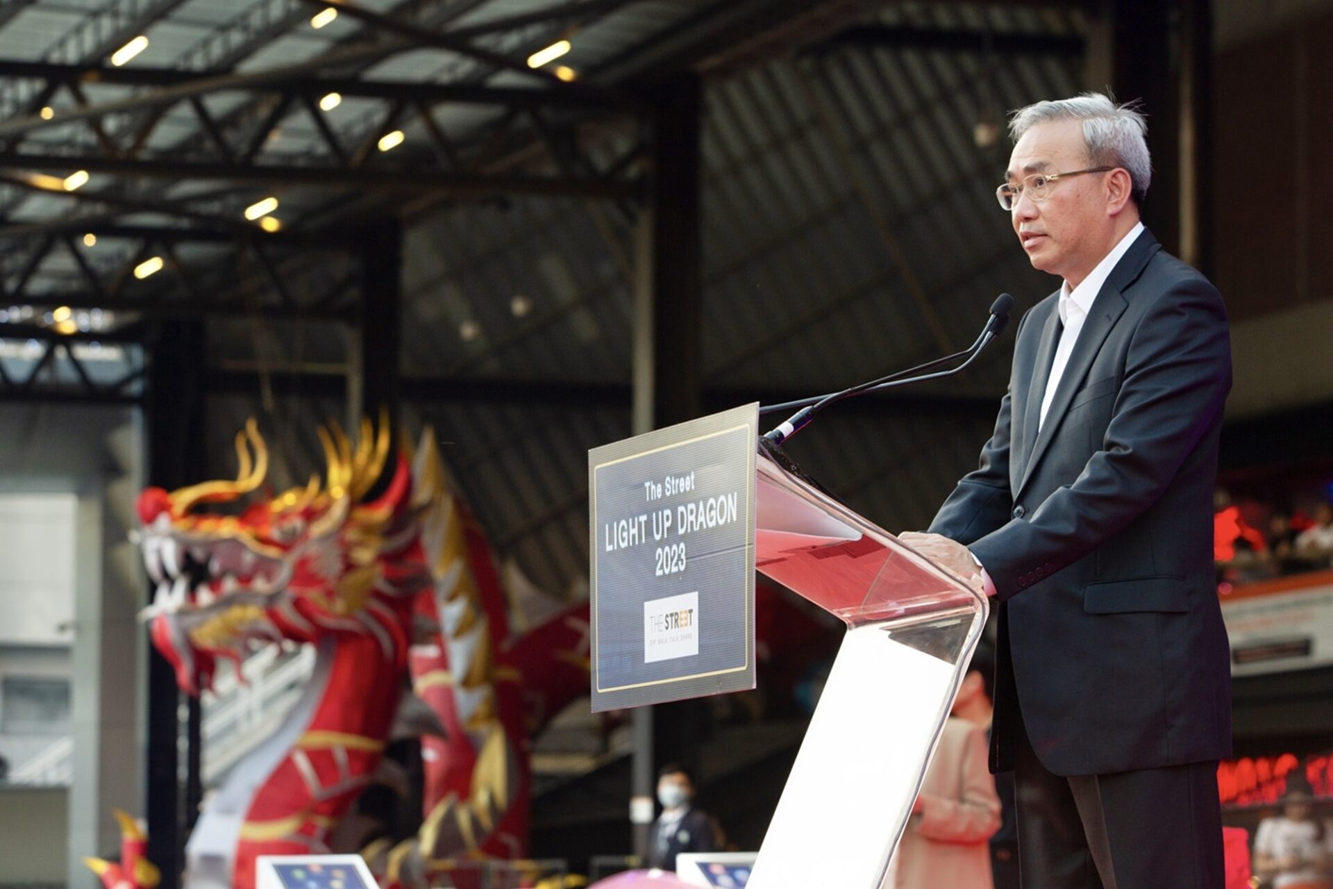นายพงษ์ศักดิ์ นันตวรรณกุล กรรมการผู้จัดการ ศูนย์การค้า เดอะ สตรีท รัชดา กล่าวว่า เพื่อเป็นการ ตอกย้ำการเป็นศูนย์กลางการท่องเที่ยว และกระตุ้นการท่องเที่ยวยามค่ำคืนที่แปลกใหม่ เปิดประสบการณ์สุดพิเศษ ส่งท้ายปี พร้อมทั้งเป็นการเฉลิมฉลองครบรอบ 8 ปีของศูนย์การค้าฯ จึงได้จัดพื้นที่บริเวณด้านหน้าศูนย์การค้า เดอะ สตรีท รัชดา เป็นแลนด์มาร์คท่องเที่ยวแห่งใหม่ส่งท้ายปีเก่าต้อนรับปีมังกร ด้วยการสร้าง “โคมไฟมังกรยักษ์ 5 ธาตุ 5 สี” เพื่อเป็นสิริมงคลให้กับนักท่องเที่ยวที่มาชื่นชม ถ่ายรูป และยังเป็นสัญลักษณ์ตัวแทนของการส่งพลังแห่งความโชคดีและโชคลาภ ในช่วงปีใหม่ไปจนถึงตรุษจีนปี 2567 โดยการจัดแสดงโคมไฟมังกรยักษ์ 5 ธาตุ 5 สี เริ่มตั้งแต่วันที่ 16 ธันวาคม 2566 ถึงวันที่ 29 กุมภาพันธ์ 2567