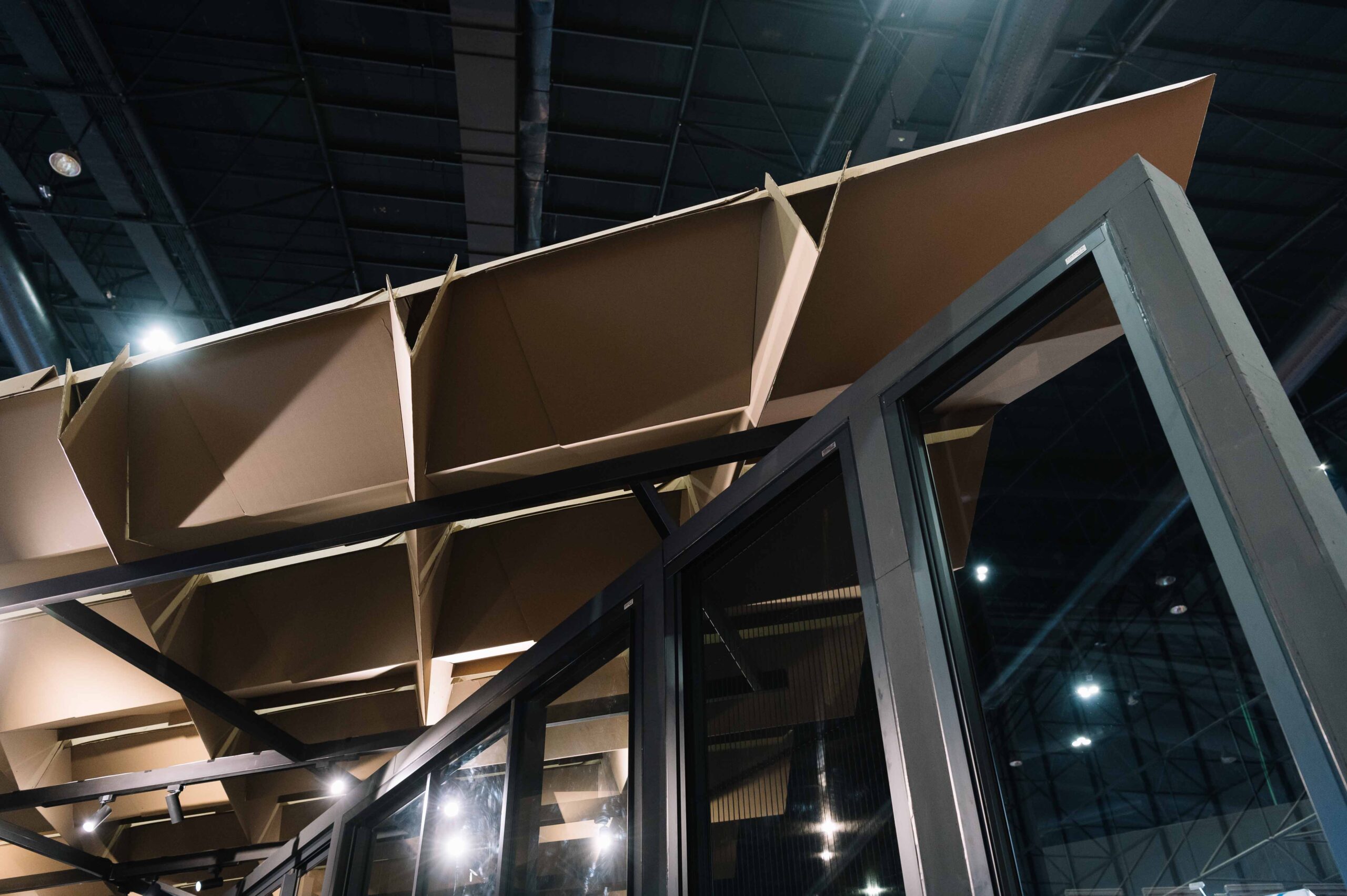 นอกจากการพัฒนานวัตกรรมใหม่ออกสู่ตลาด ทอสเท็ม ยังแสดงให้เห็นถึงความตั้งใจในการขับเคลื่อนแบรนด์ที่ใส่ใจสิ่งแวดล้อมอย่างจริงจัง ซึ่งในงานสถาปนิก’67 ที่ผ่านมา ได้ตอกย้ำในเรื่องการออกแบบที่ยั่งยืนผ่านงานดีไซน์บูธ ด้วยแนวคิด SUSTAINABLE DESIGN โดยองค์ประกอบการออกแบบเริ่มตั้งแต่ส่วนผนังนำเศษแท่งอะลูมิเนียมที่เหลือจากการผลิตมาเรียงต่อกันเป็นผนังกึ่งทึบกึ่งโปร่ง คล้ายกำแพงวัดที่มีบัวยื่นเข้าออก ผ่าแนวกลางผนังสามารถเลื่อนออกเป็นสองส่วน เพื่อเปิดพื้นที่เข้าสู่พื้นที่จัดแสดงผลิตภัณฑ์ TOSTEM ส่วนของเคาน์เตอร์และผนังพื้นที่ภายใน ใช้เหล็กเป็นโครงสร้างภายใน และใช้วัสดุไม้อัด OSB สำหรับงานพื้น และผนังห้อง แยกส่วนในแต่ละโซนที่ใช้จัดแสดงผลิตภัณฑ์ และโซนคาเฟ่ด้านใน หลังคาใช้โครงสร้างหลังคาทำจากกระดาษลูกฟูก เสียบเข้าหากันเป็นทั้งโครงรับน้ำหนัก แผ่นหลังคา และฝ้าเพดานในตัวเดียวกันเพื่อให้มีน้ำหนักเบาที่สุด โดยวัสดุที่นำมาใช้ประกอบด้วย อะลูมิเนียม , กระจก , เหล็ก , ไม้อัด OSB , กระดาษลูกฟูก ซึ่งภายหลังจากการจัดงานได้ถูกนำไปสู่กระบวนการย่อยสลายและรีไซเคิลทั้งหมด อาทิ เศษอะลูมิเนียมที่ถูกนำกลับไปสู่กระบวนการรีไซเคิล 100% ที่โรงงานเป็นต้น ทำให้บูธของทอสเท็มในปีนี้สามารถลดการสร้างขยะได้เกือบ 100% เมื่อเทียบกับการจัดสร้างบูธในปีที่ผ่านมา