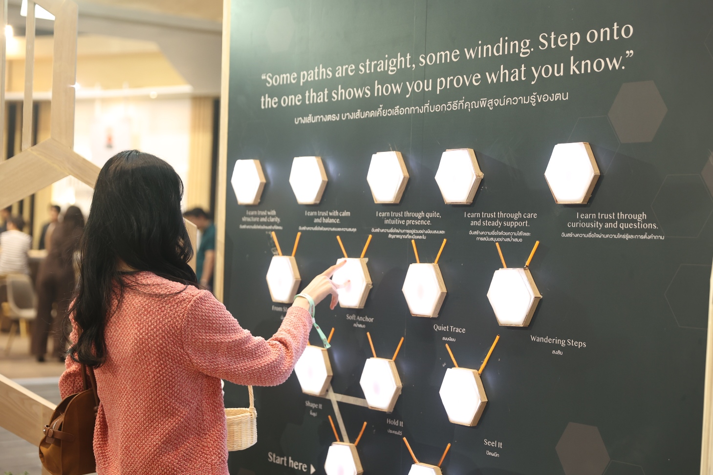 ภายในงาน Dragonfly Summit แขกที่มาร่วมงานสามารถเดินผ่านห้องหกเหลี่ยมทั้งแปดห้องในกิจกรรม Harmony Bee Maze ที่ผสานศิลปะ เกม และโจทย์สั้นๆ เพื่อสะท้อนจุดแข็ง สไตล์การเป็นผู้นำ และ Trust Frequency เฉพาะตัวของแต่ละบุคคล ปิดท้ายด้วยเครื่องดื่มสมุนไพรที่รังสรรค์ขึ้นตามสไตล์การเป็นผู้นำแต่ละแบบที่ Jampa Bar เพื่อช่วยให้แขกที่มาร่วมงานสัมผัสได้ว่า ความไว้วางใจ ชุมชน และธรรมชาติสามารถหลอมรวมกันในชีวิตประจำวันได้อย่างไร
