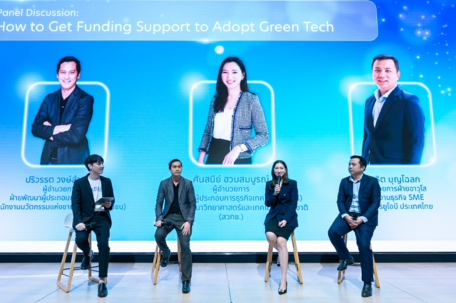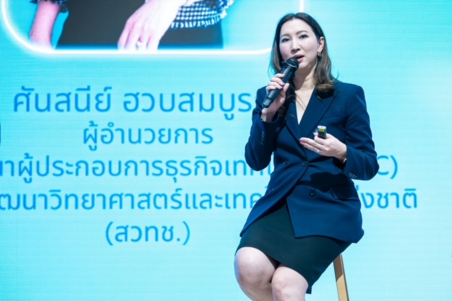 นางศันสนีย์ ฮวบสมบูรณ์ ผู้อำนวยการศูนย์พัฒนาผู้ประกอบการธุรกิจเทคโนโลยี (BIC) สำนักงานพัฒนาวิทยาศาสตร์และเทคโนโลยีแห่งชาติ (สวทช.) ตอกย้ำความทุ่มเทในการช่วยเหลือ SMEs เพื่อฝ่าฟันอุปสรรคในการดำเนินงานและความก้าวหน้าสู่เป้าหมาย Net Zero ด้วยการใช้ประโยชน์จากเทคโนโลยี Greentech รวมถึงการสนับสนุนด้านการเงินสำหรับงานวิจัยที่ก้าวล้ำ